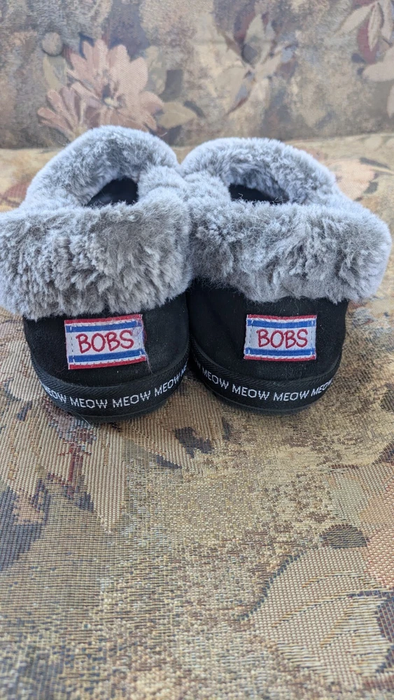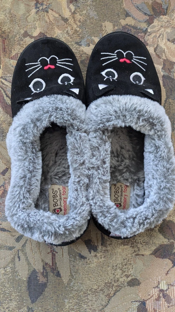 Bobs by Skechers Womens 7.5 Meow Memory Foam Pajamas Slippers Black Cats