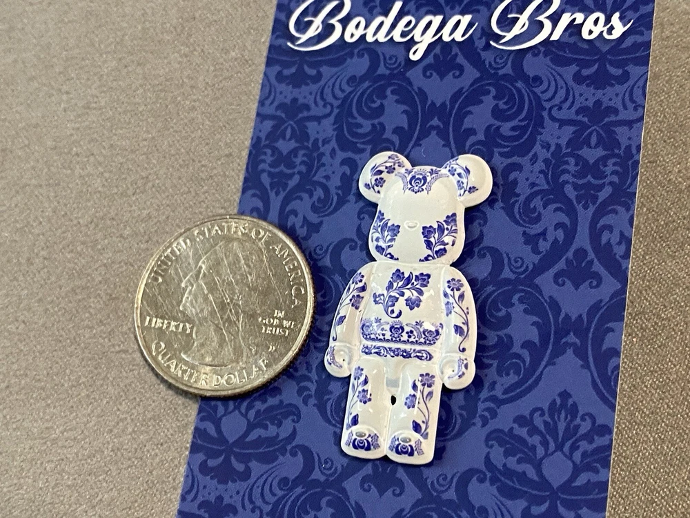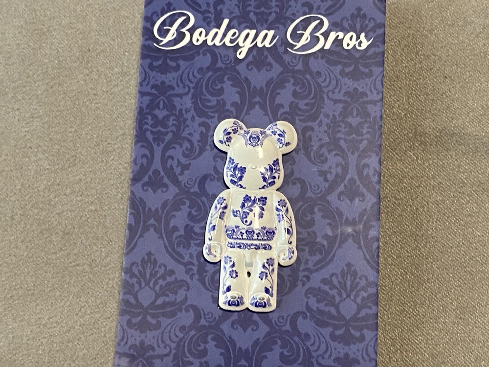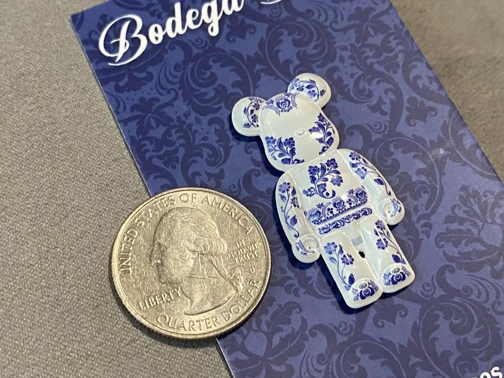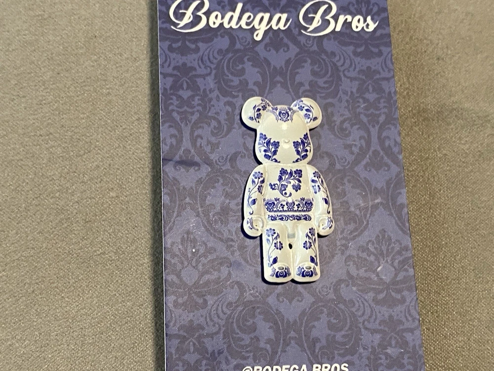 Bodega Bros Bear Brick White Blue Floral Print Hat Pin Limited Edition