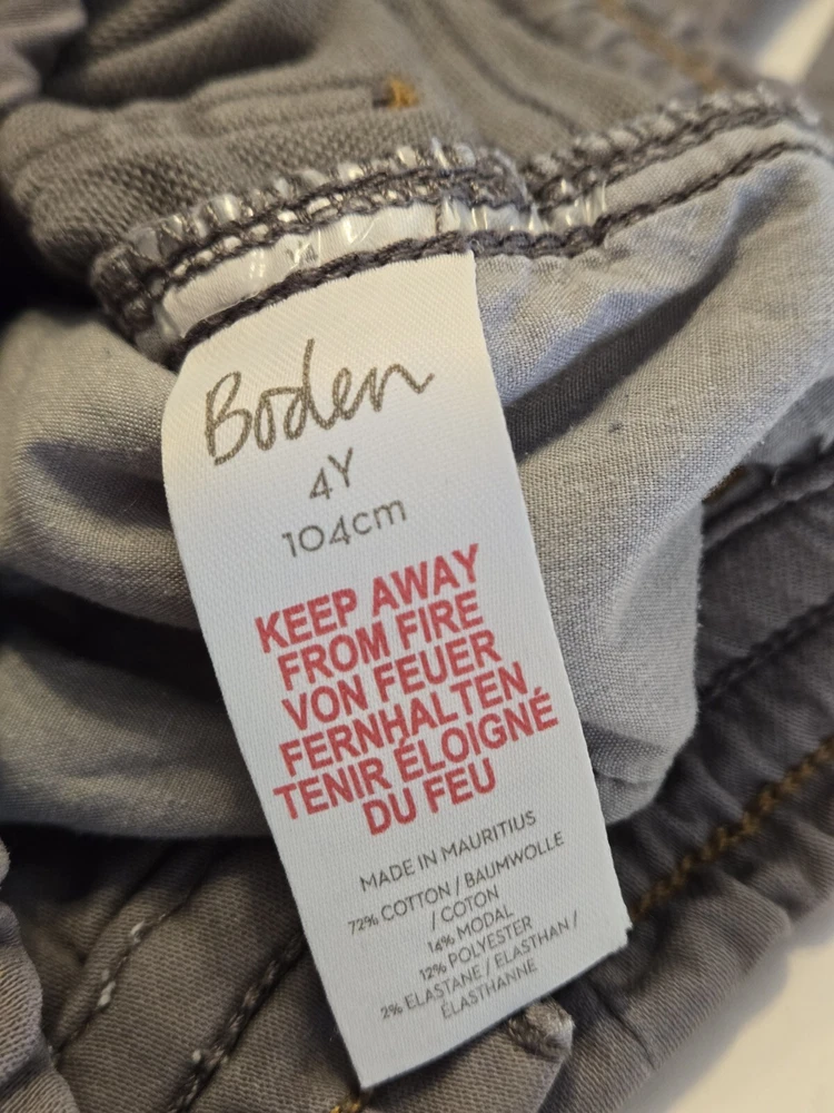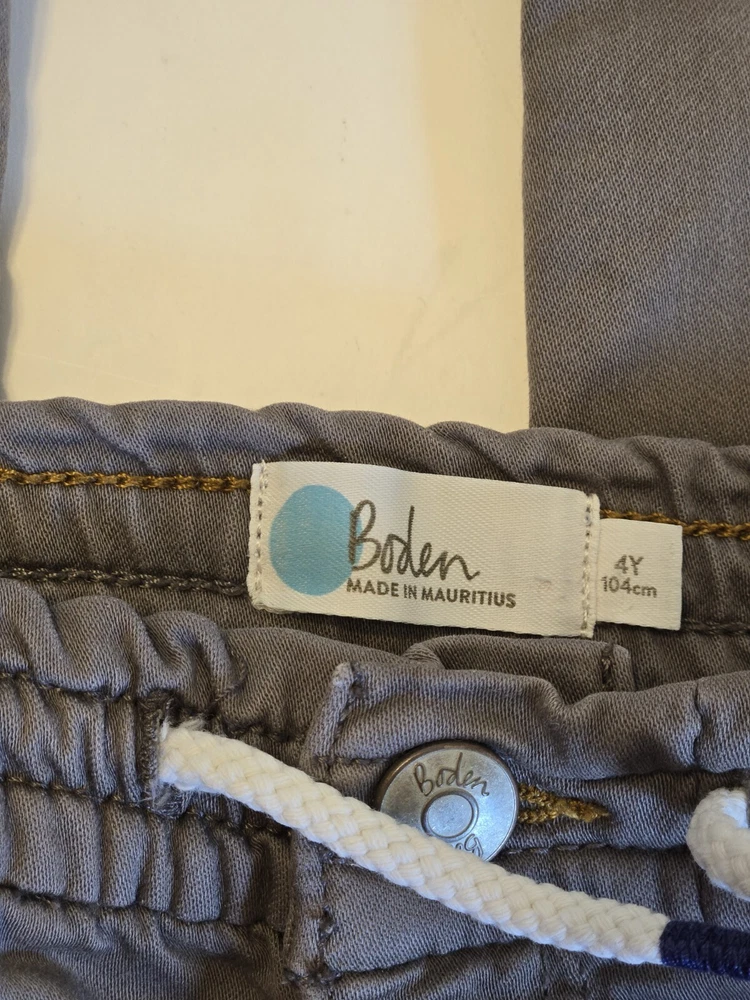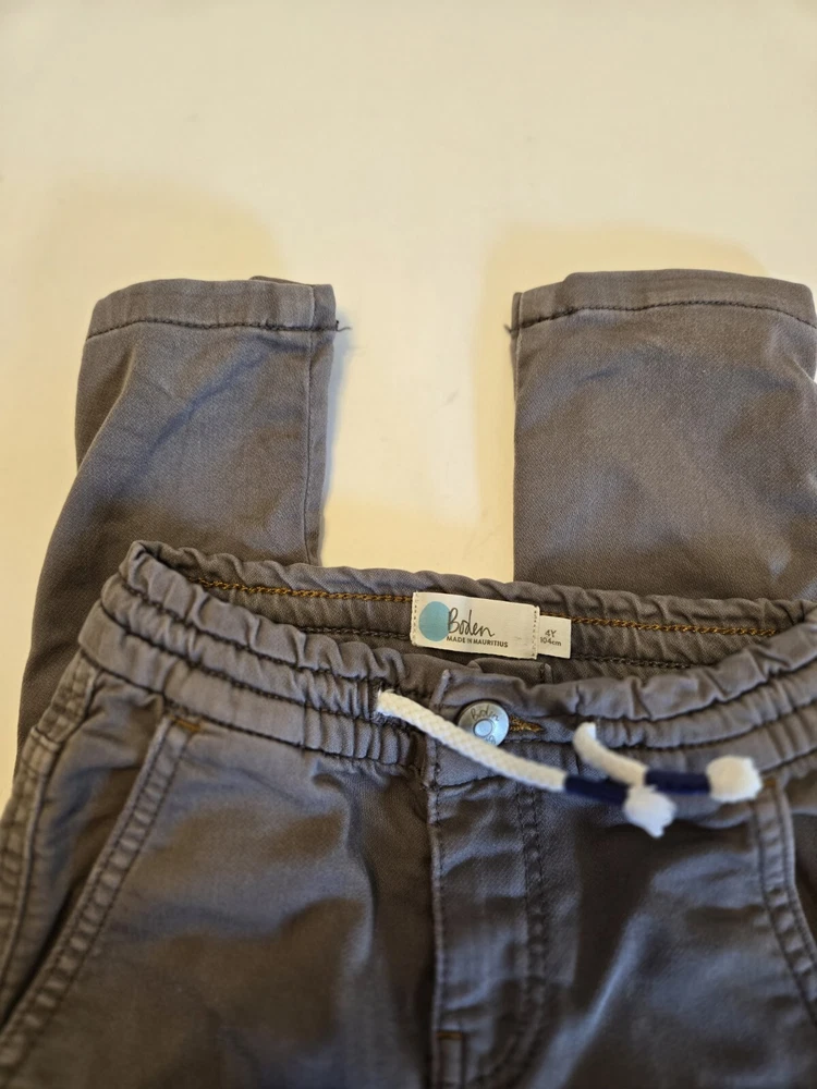 Brand: Boden Inseam: 17 in Vintage: No Style: Chino Features: Comfort, Easy Care, Elastic Waist, Pockets, Stretch Handmade: No Season: Fall, Spring, Summer Country/Region of Manufacture: Mauritius Character: . Color: Brown Fit: Slim Waist Size: 18 in Garment Care: Machine Washable Material: 7% Cotton 12% Modal 11% Polyester 3% Elastane Theme: Classic, Preppy Size: 4 Department: Boys Performance/Activity: Play, School Character Family: . Occasion: Casual, Party, Travel Pattern: Solid Fabric Type: Blended Fabric Type: Pants Closure: Zip