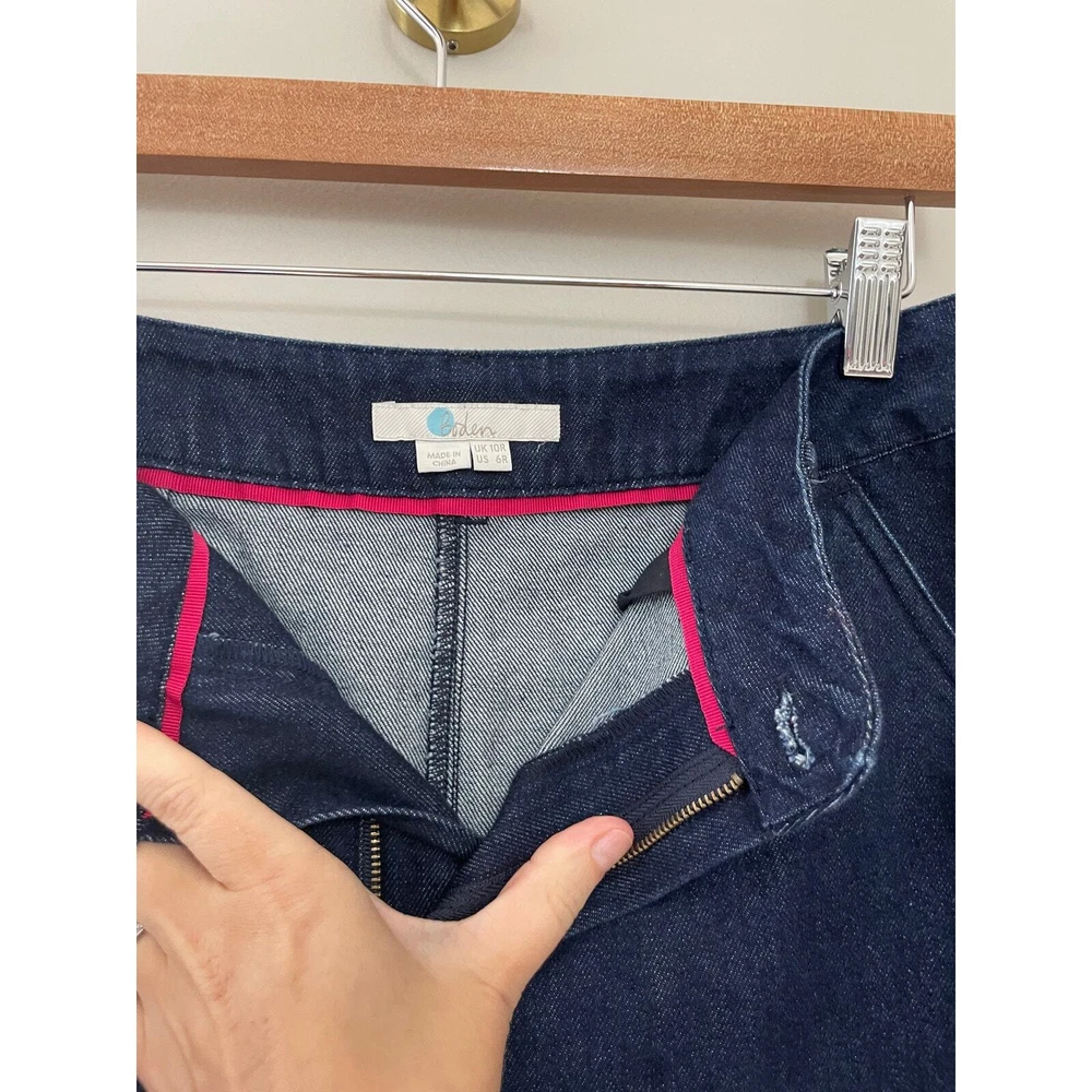 Boden Classic Dark Wash Pleated Midi Denim Skirt Size 6R