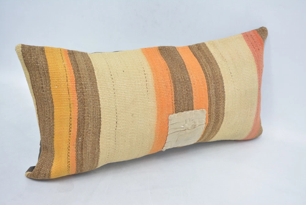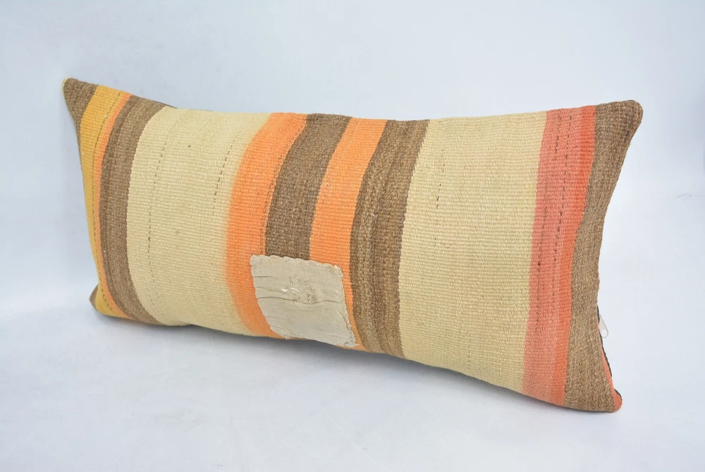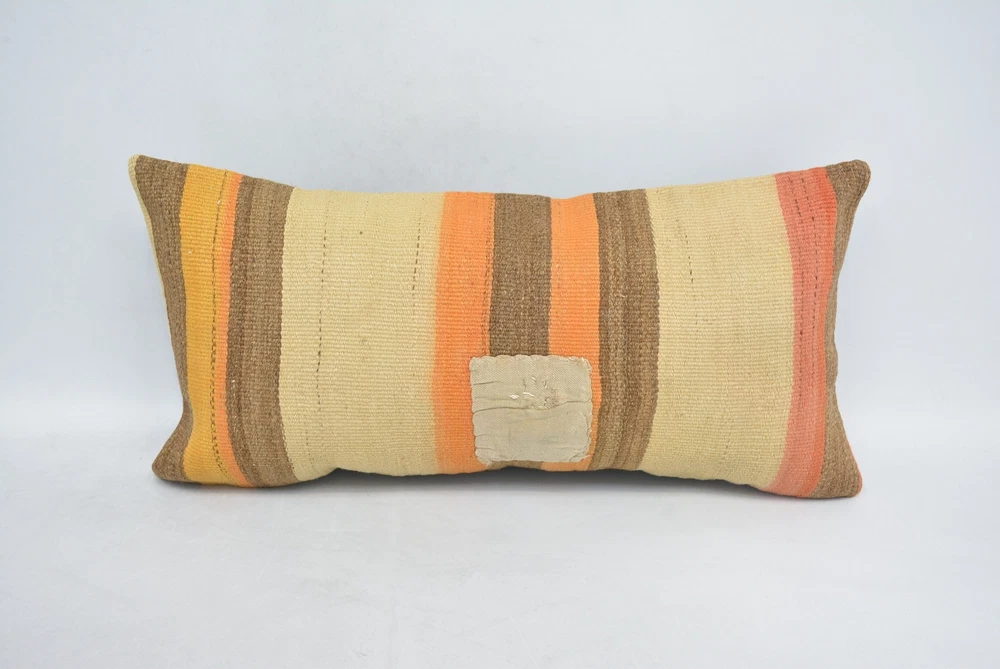 Body Pillow, 12"x24" Beige Pillow Covers, Kilim Pillow Cover
