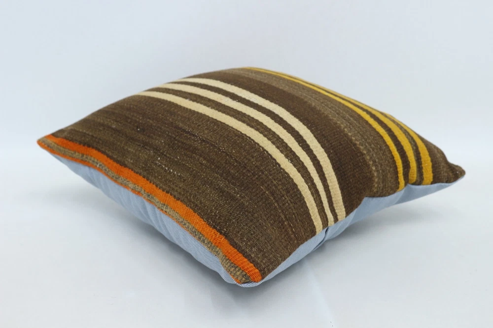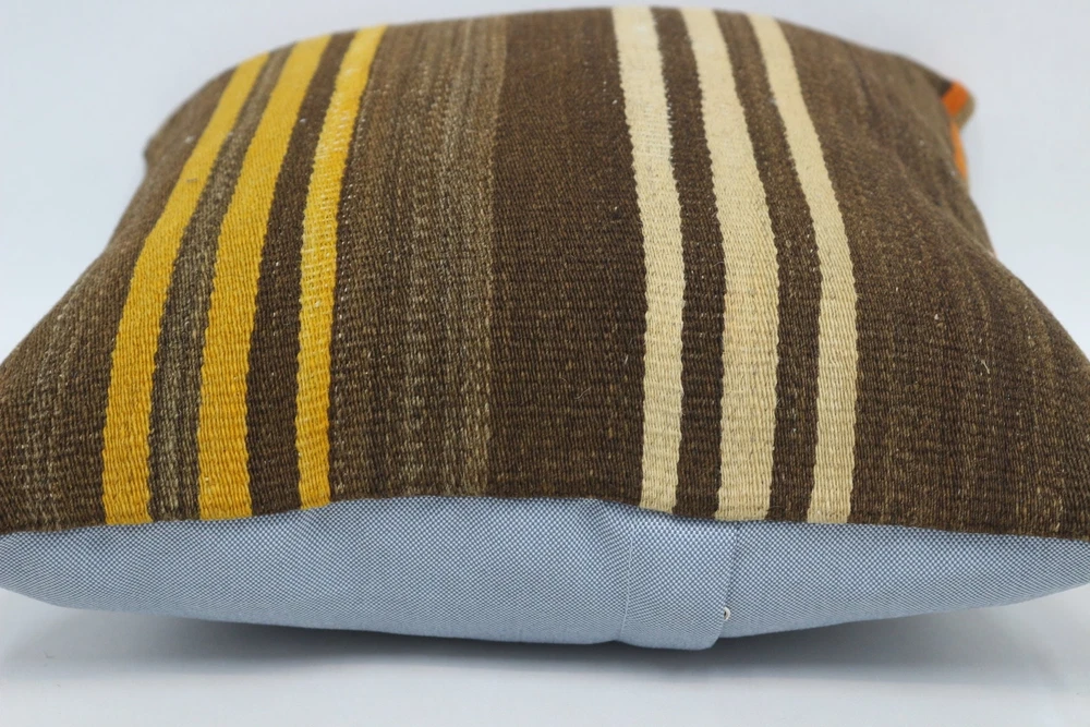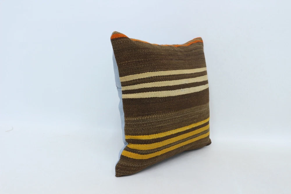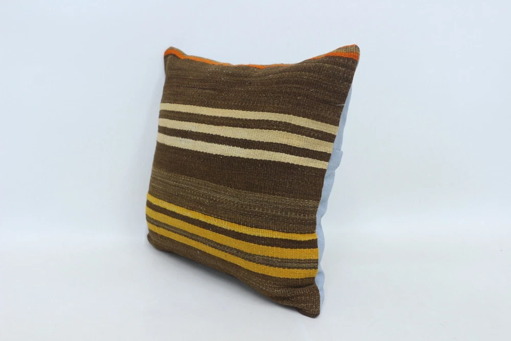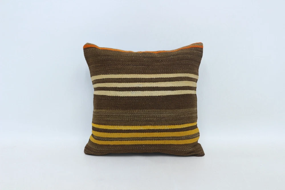 Body Pillow, Kilim Pillows, 16"x16" Brown Pillow Cover, Turkish Kilim Pillow