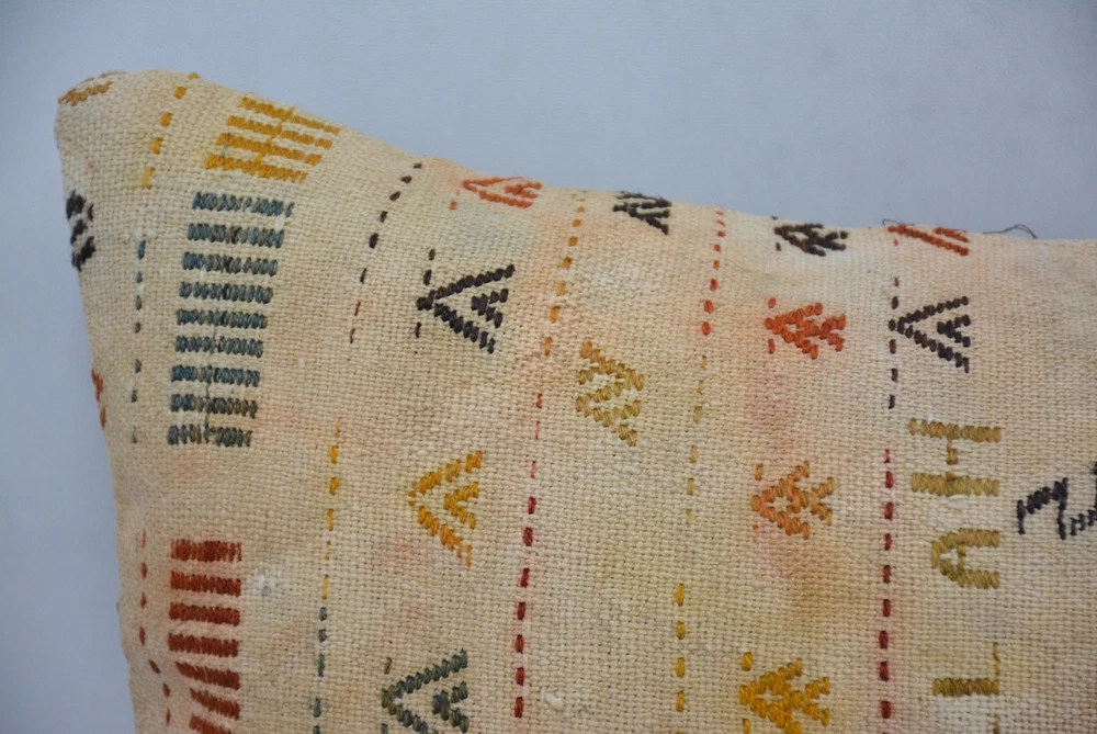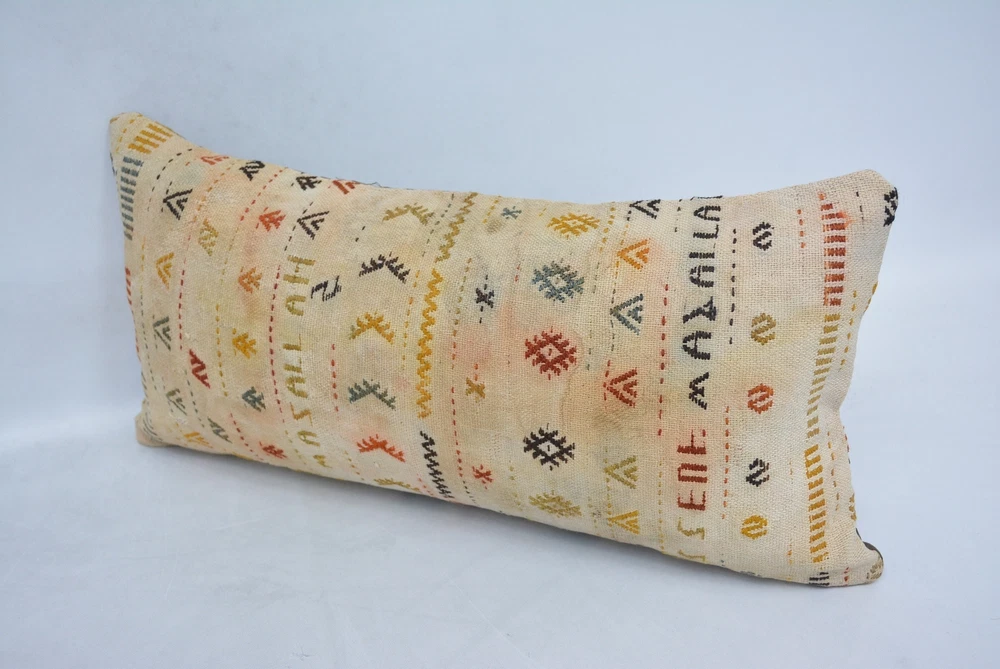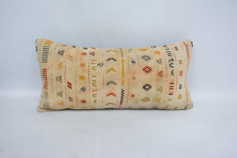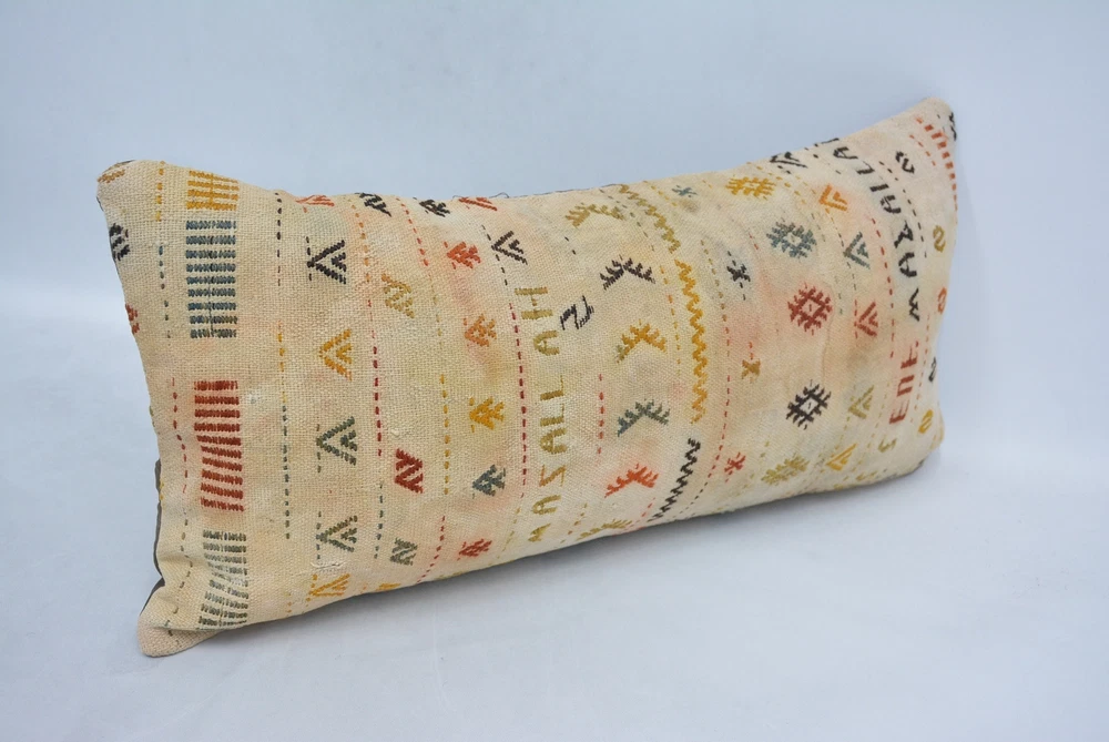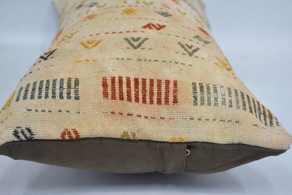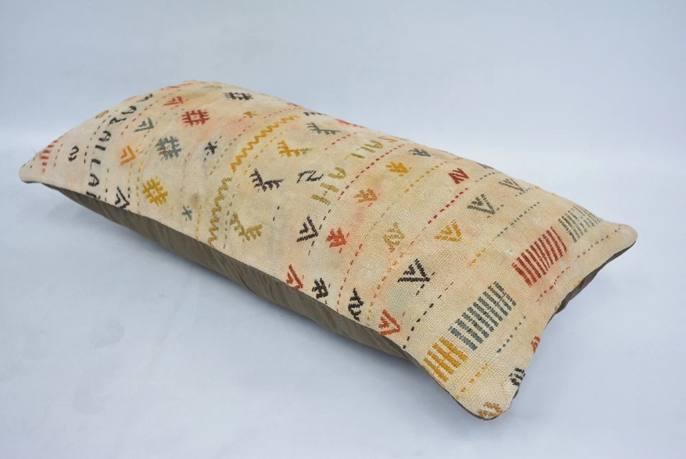 Body Pillow, Throw Pillow, 12"x24" Beige Cushion Case, Turkish Kilim Pillow