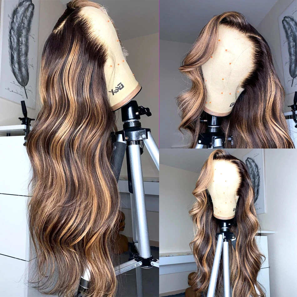 $ 70.07Reddish Brown HD Glueless Body Wave Lace Front Wig Pre Plucked Human Hair