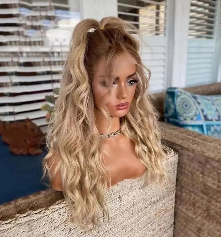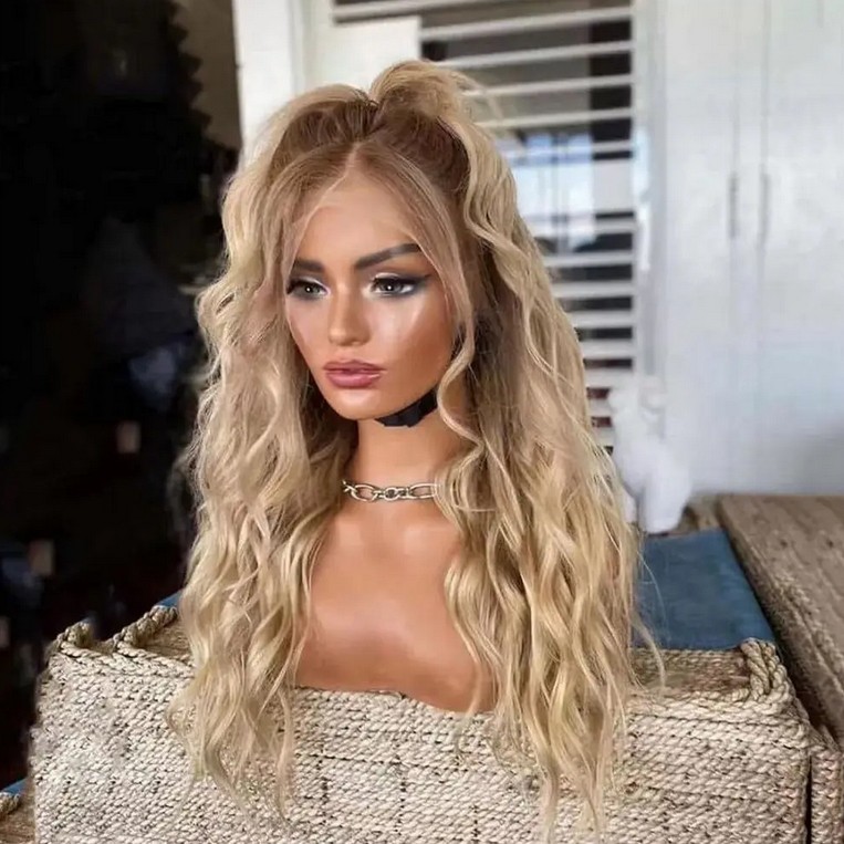 Body Wave Ash Blonde Wig With Dark Roots 13x4 Lace Front Human Hair Wigs