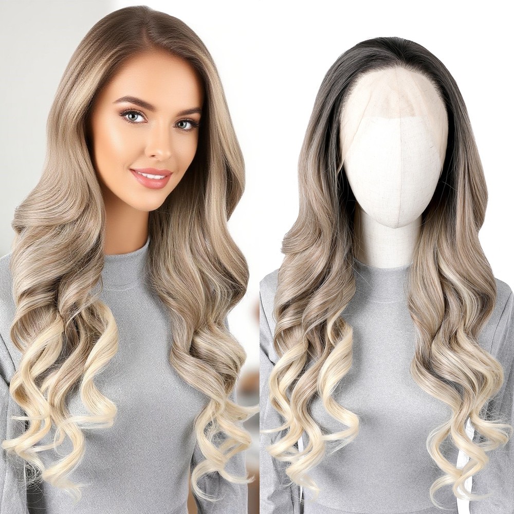 $ 192.41100% Human Hair 13x4 Lace Front Wig for Women Ombre Ash Blonde Wig