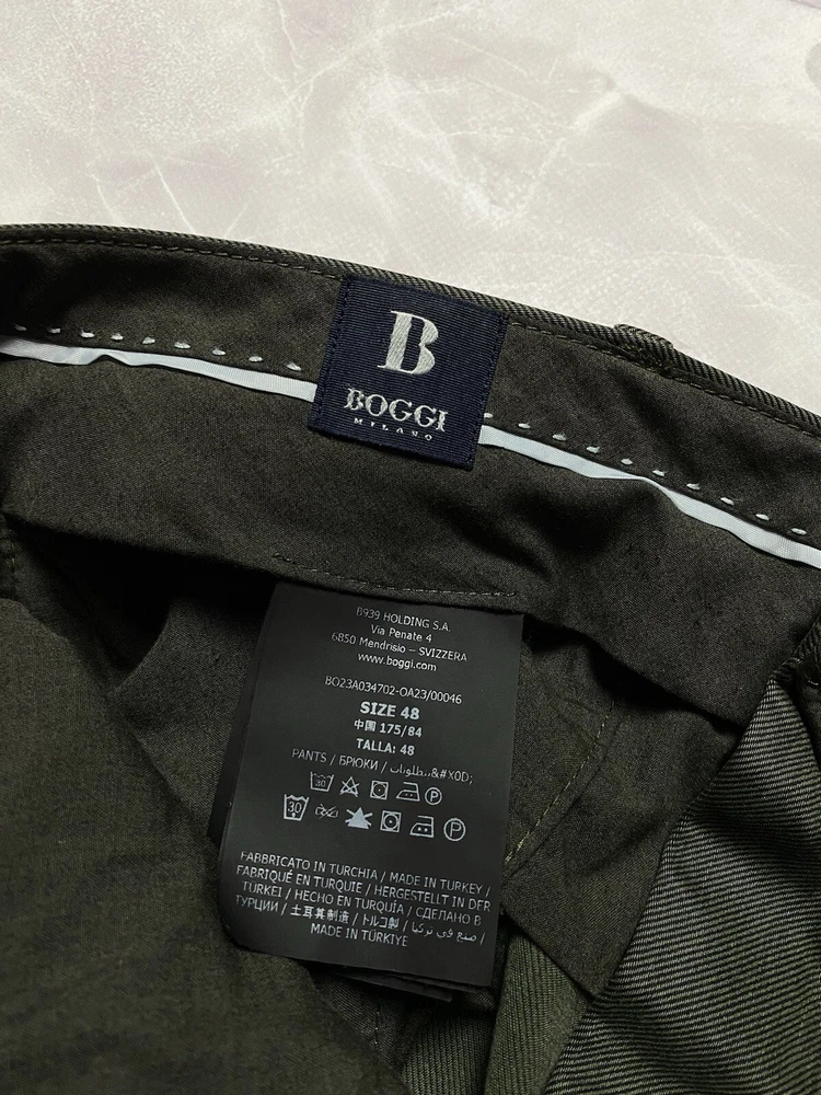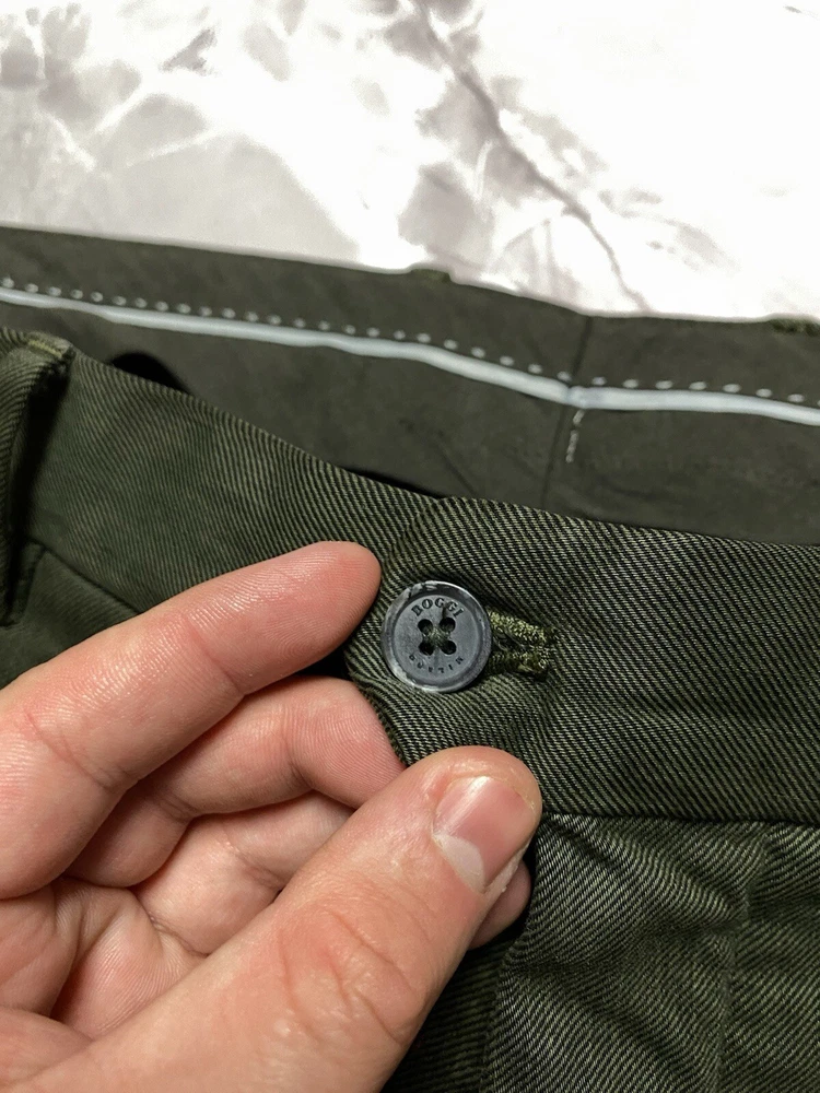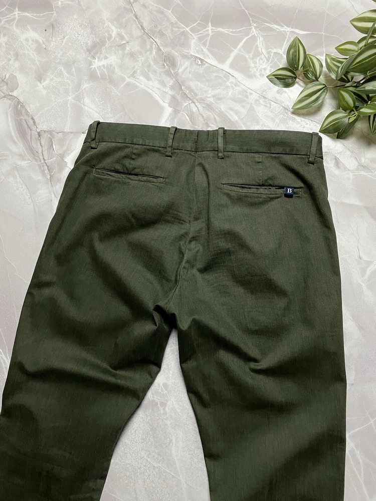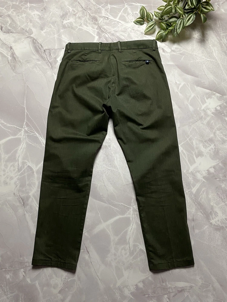 Garment-dyed stretch cotton and Lyocell Tencel trousers Tencel Lyocell is a high-quality, high-performance fabric of natural origin: it is gentle on the skin, breathable and lightweight Its flowing texture makes it easy to maintain, allowing for quick drying Patch with a branded logo on the back pocket CONDITION very good SIZE 48 MEASUREMENTS: Half waist - 45 cm Front rise - 30 cm Width at the hips - 56 cm Length - 99 cm Inseam length - 75 cm Leg opening - 18 cm