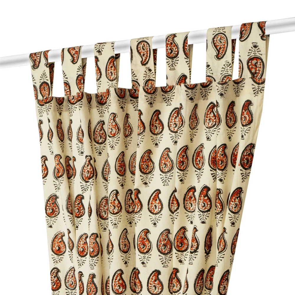 Bohemian Indian Floral Block Print Cotton Window Curtains (Set of 2)