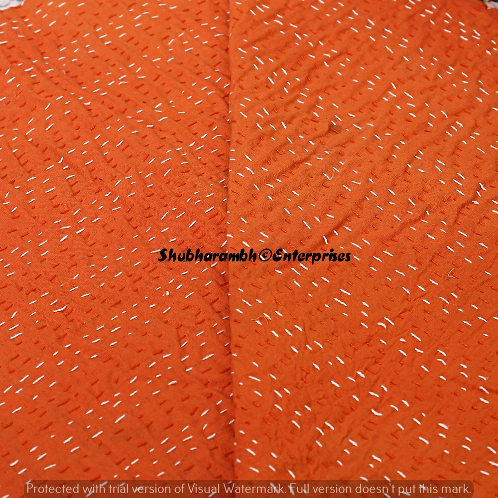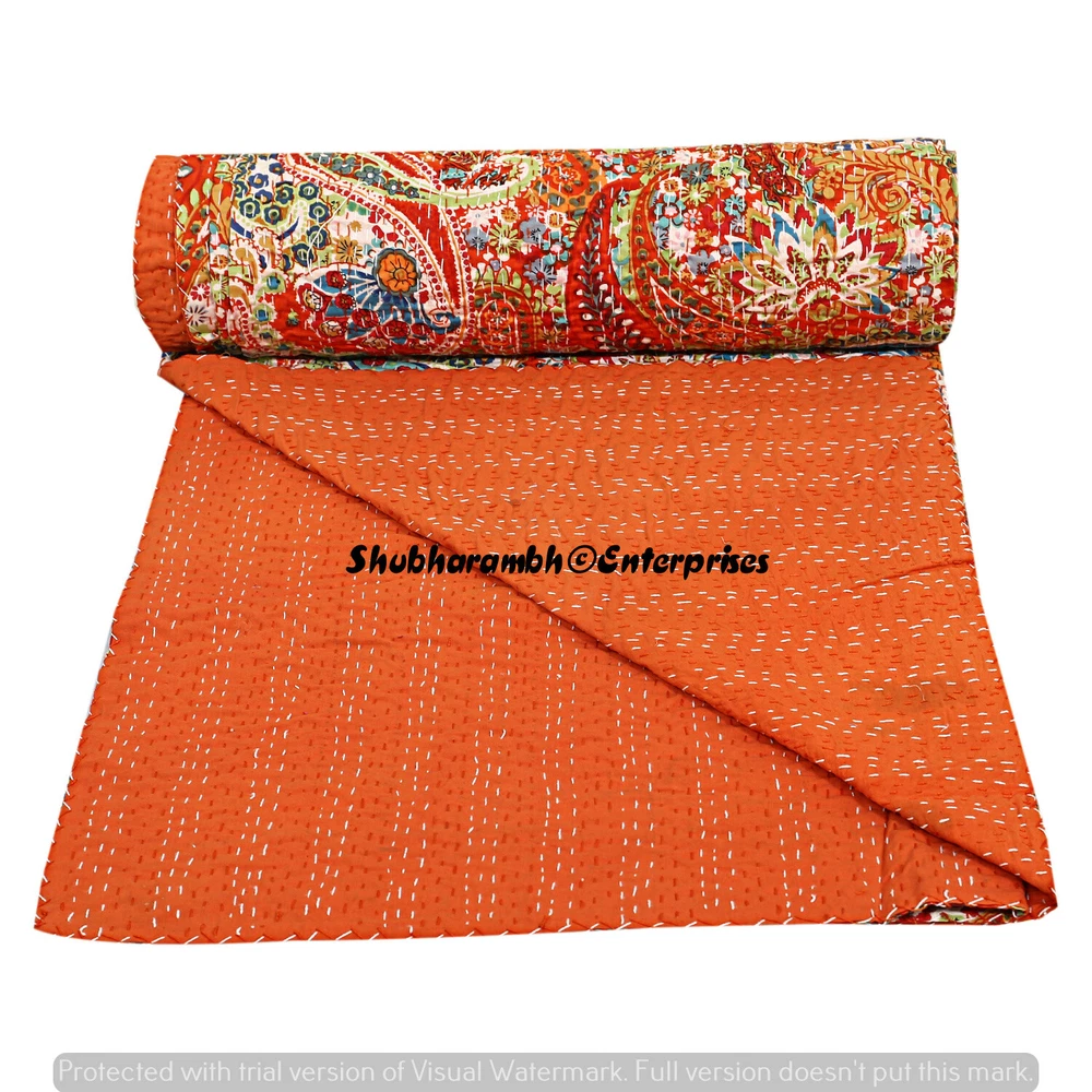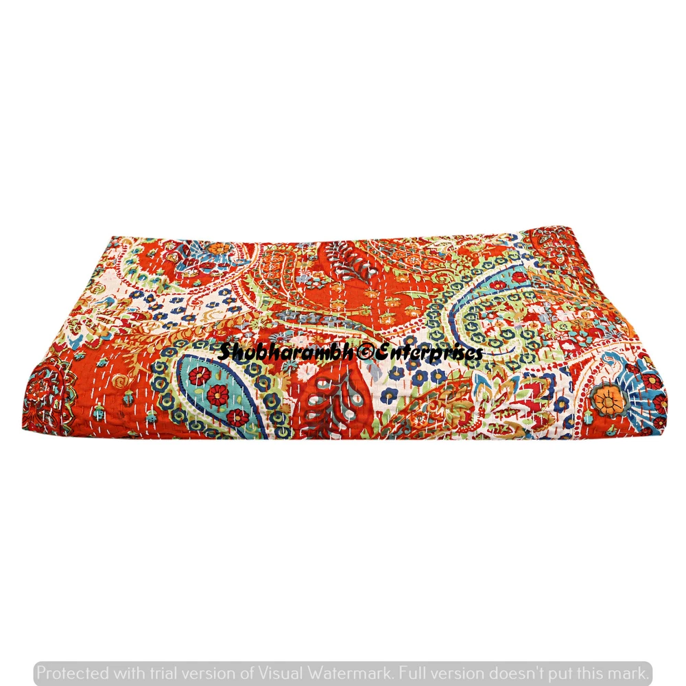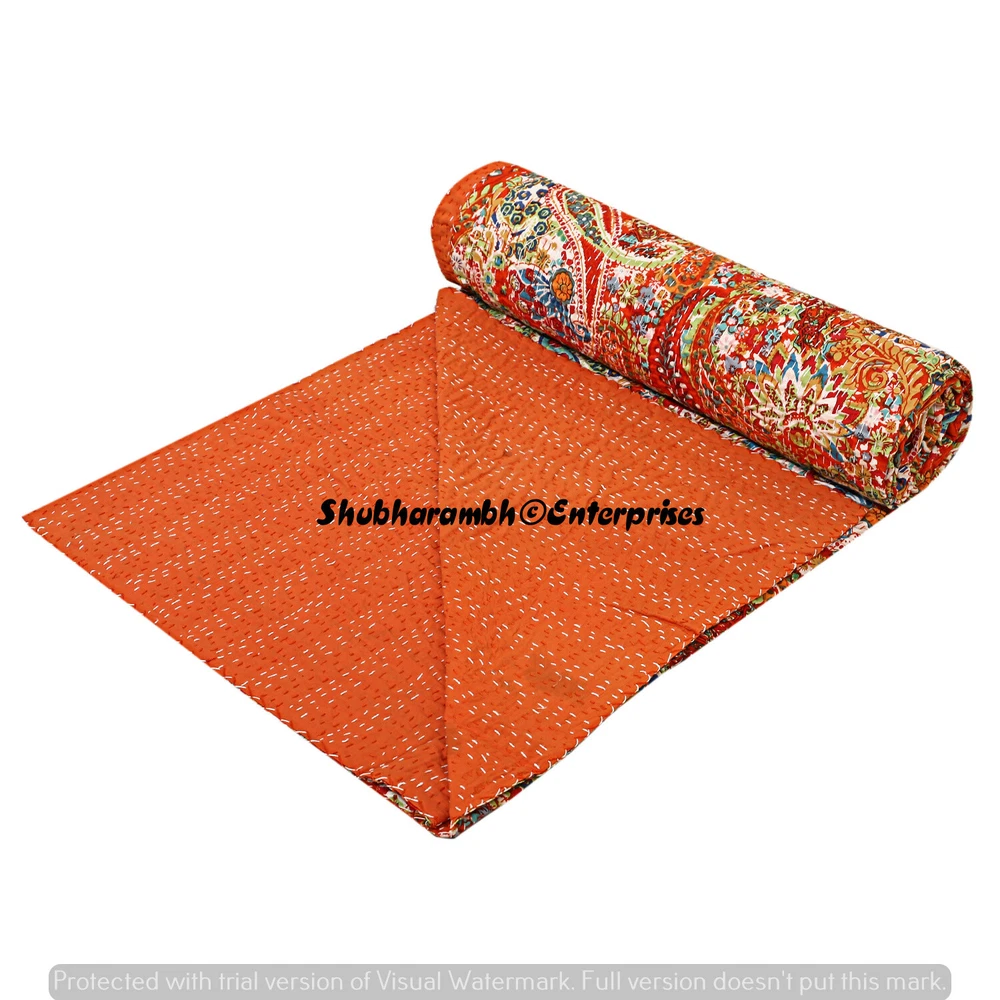 Features: Decorative, Quilted Personalized: Yes Material: 100% Cotton, Cotton Size: Queen Care Instructions: Machine Washable Wash Care: Machine Washable Item Width: 108'' Inches { 274 Cm } Product Line: Hand Print Country/Region of Manufacture: India UPC: Does not apply Type: Coverlet Color: Orange Weight: 1.200 Kg {Approx } Custom Bundle: No Pattern: Paisley Closure Type: No Closure Style: Kantha Brand: Handmade MPN: Does Not Apply Theme: Asian Item Length: 90'' Inches { 228 Cm } gtin13: Does not apply Size In Inches: 90'' x 108" Inch (228 x 274 Cm) Insulation: All Seasons Shape: Rectangular Thread Count: 1000 or More