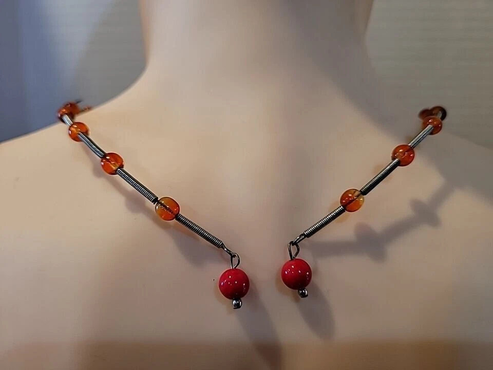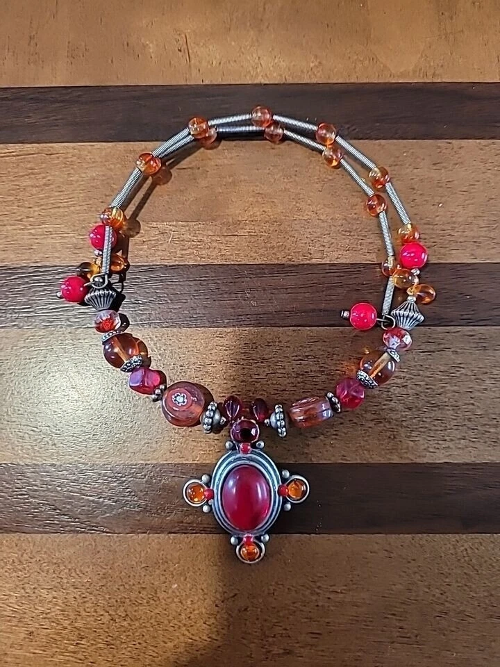Bohemian Style Red And Orange Beaded Choker Necklace One Size Fits All