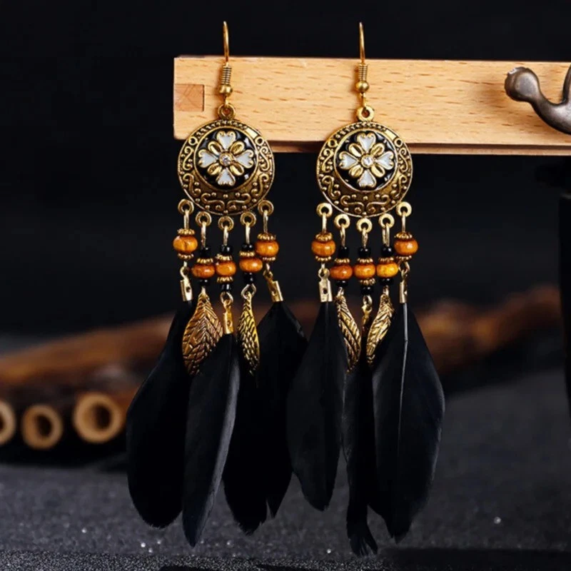 Bohemian Tassel Drop Feather Dangle Earrings Vintage Women’s Jewelry