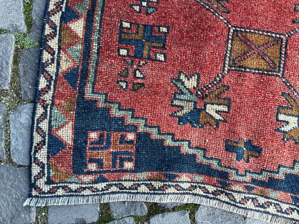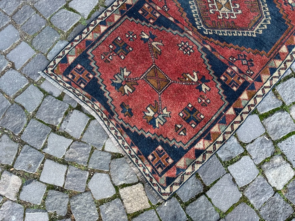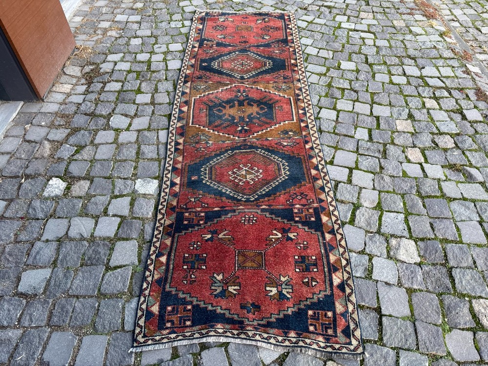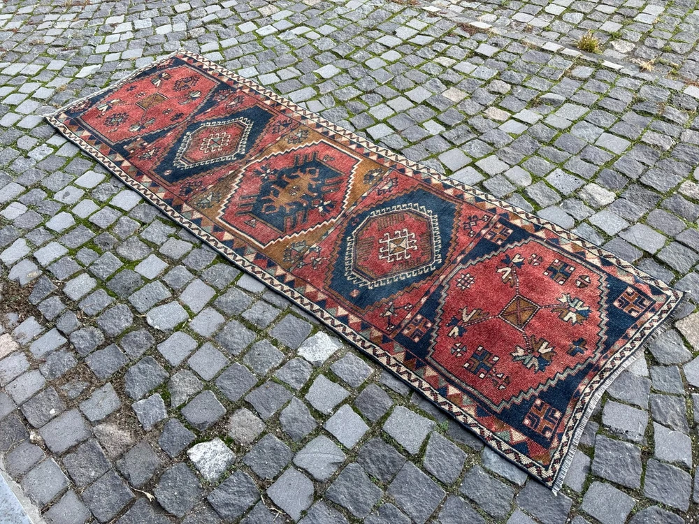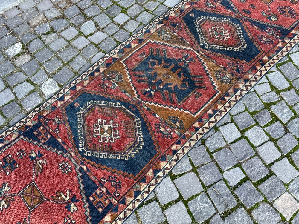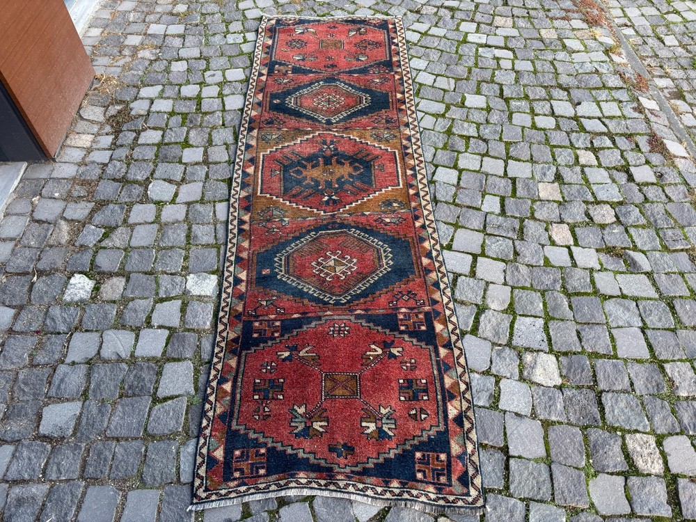 An old (approximately 45-60 years old) hand knotted / hand woven Turkish rug from the Middle Anatolian Region and made of genuine, high quality wool, in natural colors. Our distinguished Antiques and Vintage rugs, each with its own unique story, have been carefully selected from every corner of Turkey. RUG DETAILS * One-of-a-kind vintage rug * Dimensions: 2,6 x 8,5 ft = 33 x 103 inc = 82 x 262 cm * Low pile: approximately 0.2"(0.5 cm) * Dyed with natural dyes * Product code : RR 1889 SHIPPING * Free shipping on all items. * Usually shipped via FedEx or UPS. * Item will be ready for shipment within * Estimated delivery 3-5 business days 1-3 business days with a tracking number. All of our rugs have been professionally cleaned and ready to ship before being listed. These unique vintage rugs have normal wear related to their age. We believe this adds to the authenticity of these hand-woven beauties. We inspect all rugs carefully before Shipping, but in the unlikely event that due to our fault, the goods are not fit for purpose, damaged/defective, or we ship the wrong item, we will issue a 100% refund. We are a team of experienced professionals who are dedicated to ensuring your items arrive safely. Please note that our photos accurately represent the colors of the rug, however it may look different in the light in your home or against different colored floors. We are so excited to share the beauty and art of rugs with you and to see how your personal spaces transform! I do my best to build a great experience in online rug shopping for you, just look at the reviews. Please feel free to write me over conversation if you have any questions about the rug or price. I will be happy to answer to you. Thank you, Yusuf.