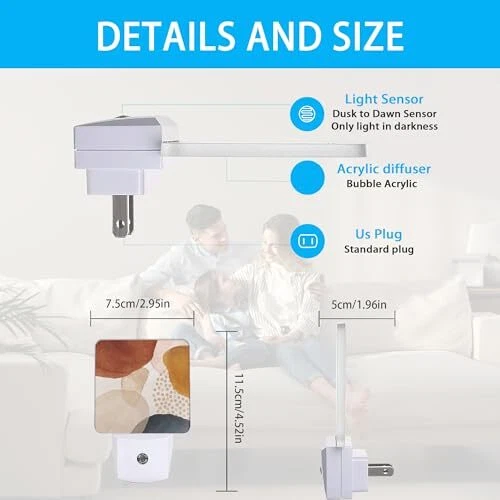 Connectivity Protocol: Homeplug Item Dimensions D x W x H: 2"D x 3"W x 4.5"H Shade Color: Multicolor Room Type: Bathroom, Kitchen, Bedroom, Living Room Is Electric: Yes Item Height: 4.5 Material Type: Plastic Item Width: 3 Type: Does Not Apply Lighting Method: LED Lamp Type: Night Light Installation Method: Freestanding Model Number: SBD04 Indoor Outdoor Usage: Indoor Product Dimensions: 2 x 3 x 4.5 inches; 2.53 ounces Mount Type: Wall Mount Is Product Cordless: No Light Source Type: Energy Efficient Item model number: SBD04 Item Length: 2 Water Resistance Level: Not Water Resistant Finish Types: Polished Color: Geometric Modern Art EAN: Does Not Apply Manufacturer: Meikosks Brand: Does Not Apply Special Features: Energy Saving, Motion Sensor, light sensor, Dawn-to-Dusk Style: Modern gtin13: Does Not Apply Is Waterproof: False Recommended Uses For Product: Decoration, Reading Number of Items: 1 Date First Available: January 13, 2024 MPN: Does Not Apply UPC: Does Not Apply
