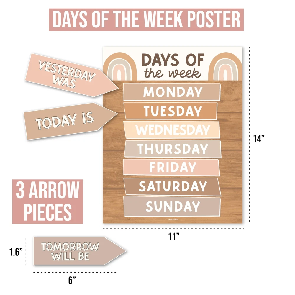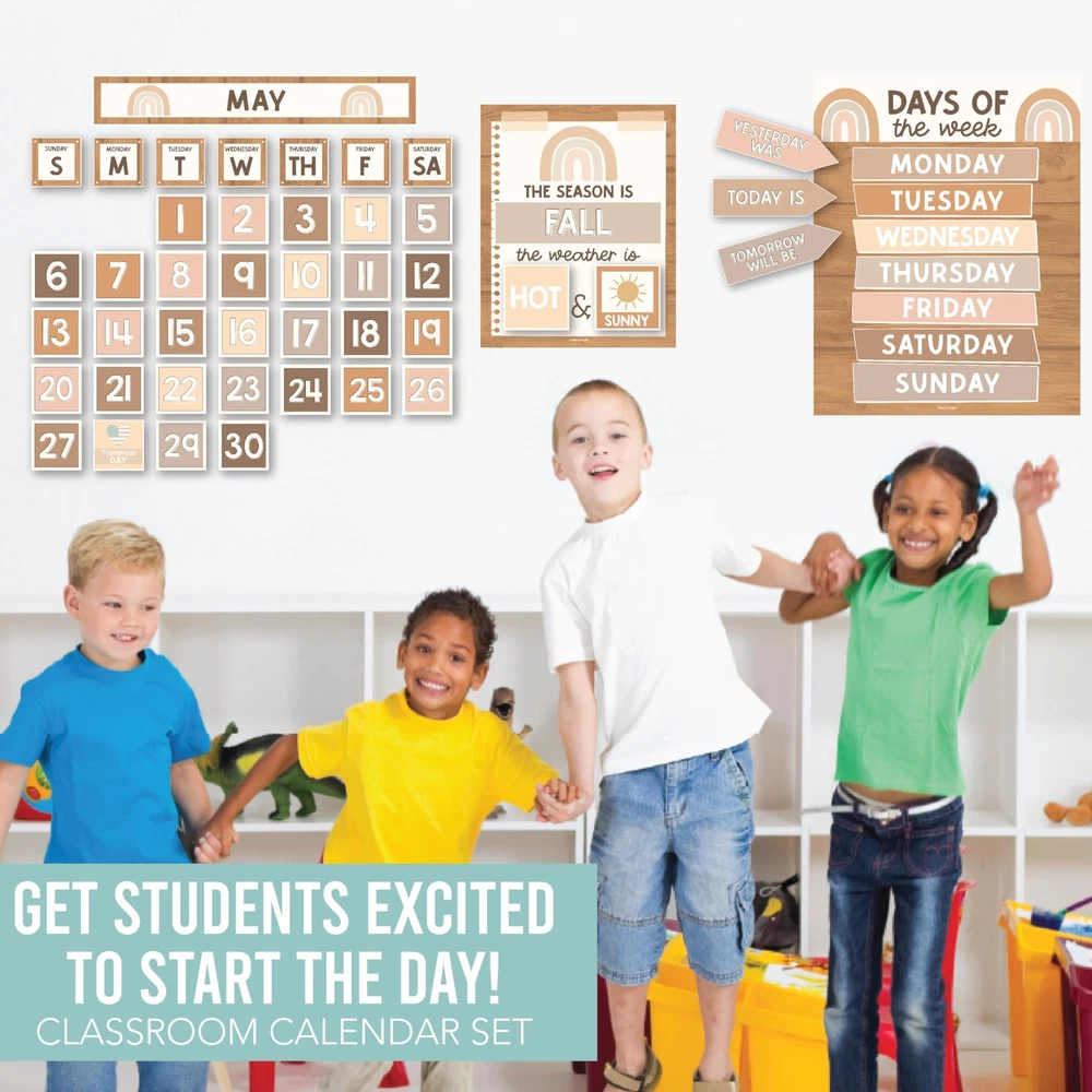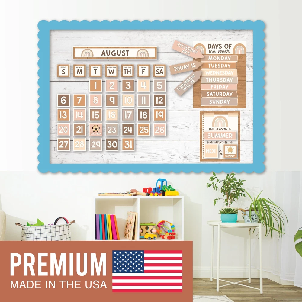Looking to add some excitement to your classroom? Look no further than these classroom bulletin board sets! They're not only fun and engaging, but also an excellent circle time activity that fosters a lifelong love for learning. Package Includes: 98 Individual Calendar Pieces 1 - 11x14" Days Of The Week Poster 1 - 8x10" Weather Chart This calendar bundle includes everything needed to teach days of the week, months, weather, and more! Our calendar poster for classroom also captures kids' attention with their bright colors, so your students can learn (and retain!) new topics in record time. And unlike other classroom calendar numbers that are made overseas, our class calendar/classroom themes decoration sets are USA made with thick cardstock, so these classroom decor theme sets can be used year after year. Give students daily calendar practice by using this as a simple rainbow color voice level chart, pastel yellow green bulletin board months of the year, blue red doodles preschool classroom must haves, weather chart for preschool, school calendar for classroom elementary teacher must haves, calendar classroom must haves for teachers elementary, class calendar numbers for classroom, teacher calendar for classroom decor theme sets, homeschool calendar for school, kindergarten calendar for classroom decorations for teachers elementary, calendar set for classroom elementary classroom must haves, bulletin board decorations for classroom essentials for teachers elementary, calendar preschool classroom must haves, kindergarten classroom must haves, prek classroom essentials, 2nd grade classroom must haves. Our family-owned business wants to help you create a fun learning space. If you have questions about our classroom must haves, classroom essentials, teacher supplies for classroom, or our preschool classroom supplies, please don't hesitate to reach out. If You’re Looking To Make Circle Time Educational And Fun; Then you need this modern farmhouse calendar set for classroom elementary; While other calendar classroom are made overseas, our preschool classroom calendar set is proudly USA made Get Kids Excited About Their Day; You'll receive 98 individual calendar pieces, 1 - 8x10 weather chart, and 1 - 11x14 days of the week poster; Inspire a love for learning with this boho kraft school calendar for classroom elementary/teacher calendar for classroom Capture Attention And Boost Focus; This bright colorful calendar numbers for classroom helps grab and hold kids' attention; Skyrocket learning speed and retention with this classroom decorations, classroom wall calendar, months of the year bulletin board set Sharpen Critical Thinking Skills; Use as a bohemian homeschool calendar, kindergarten calendar for classroom, voice level poster for classroom, weather chart for classroom, months of the year for classroom, bulletin board decorations for classroom We are so confident in the quality of our calendar chart for classroom that we offer a lifetime manufacturer warranty; If you have any issues with your preschool bulletin board sets, we will replace them with a smile; Our family-owned business is here to help you create a positive learning environment where kids can succeed now and in the future; Why wait, get your calendar days for classroom today