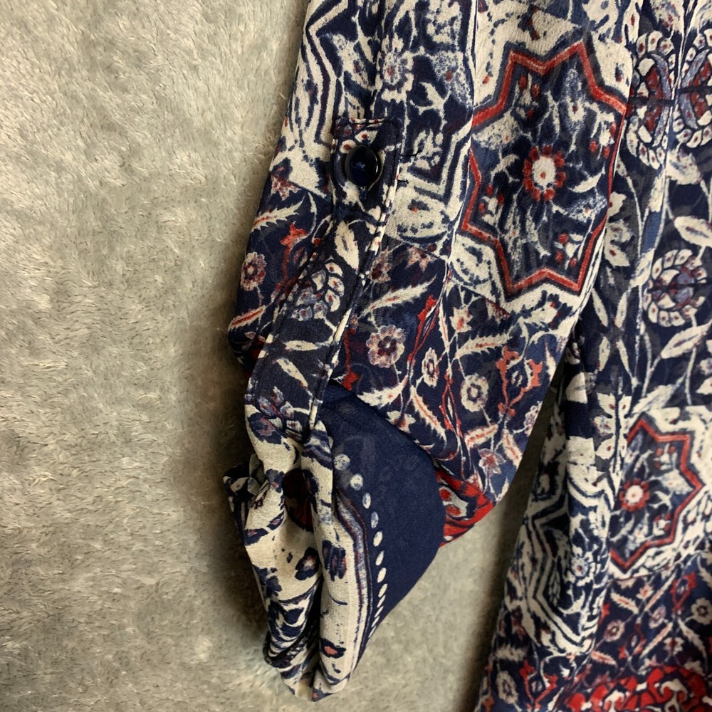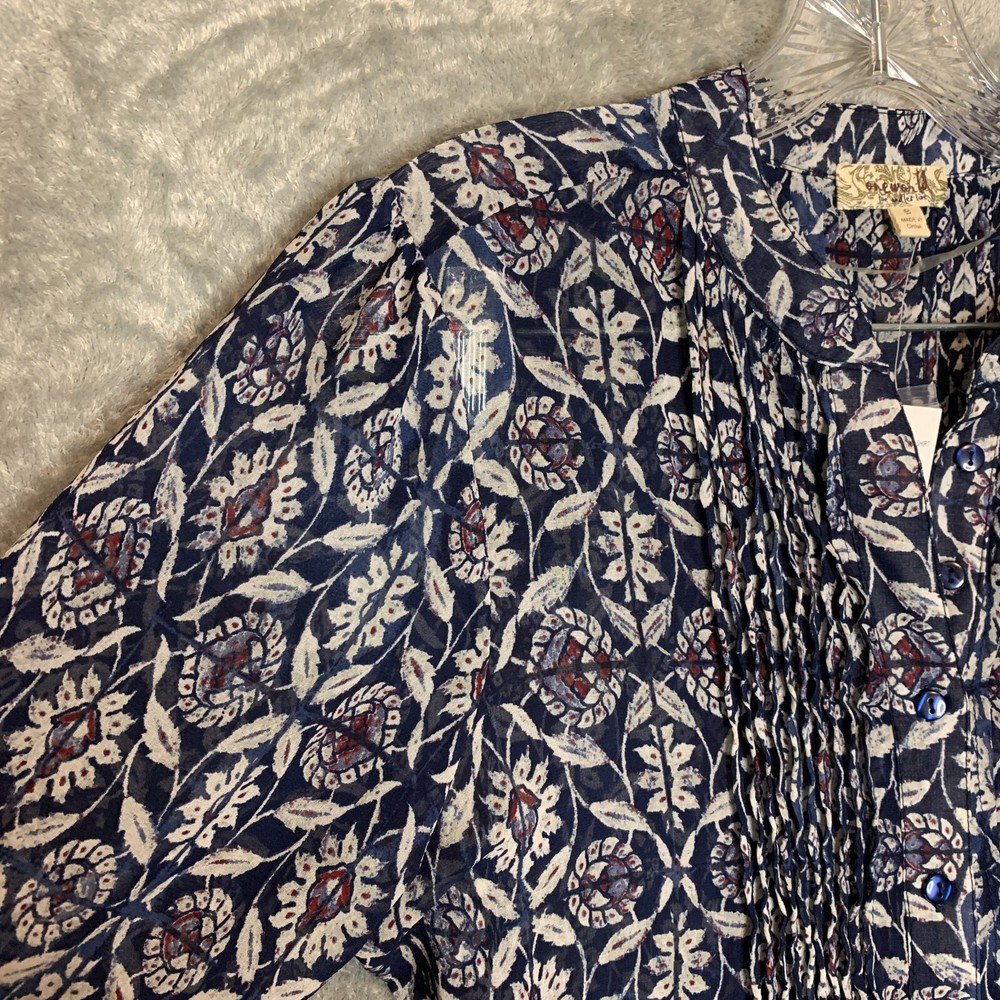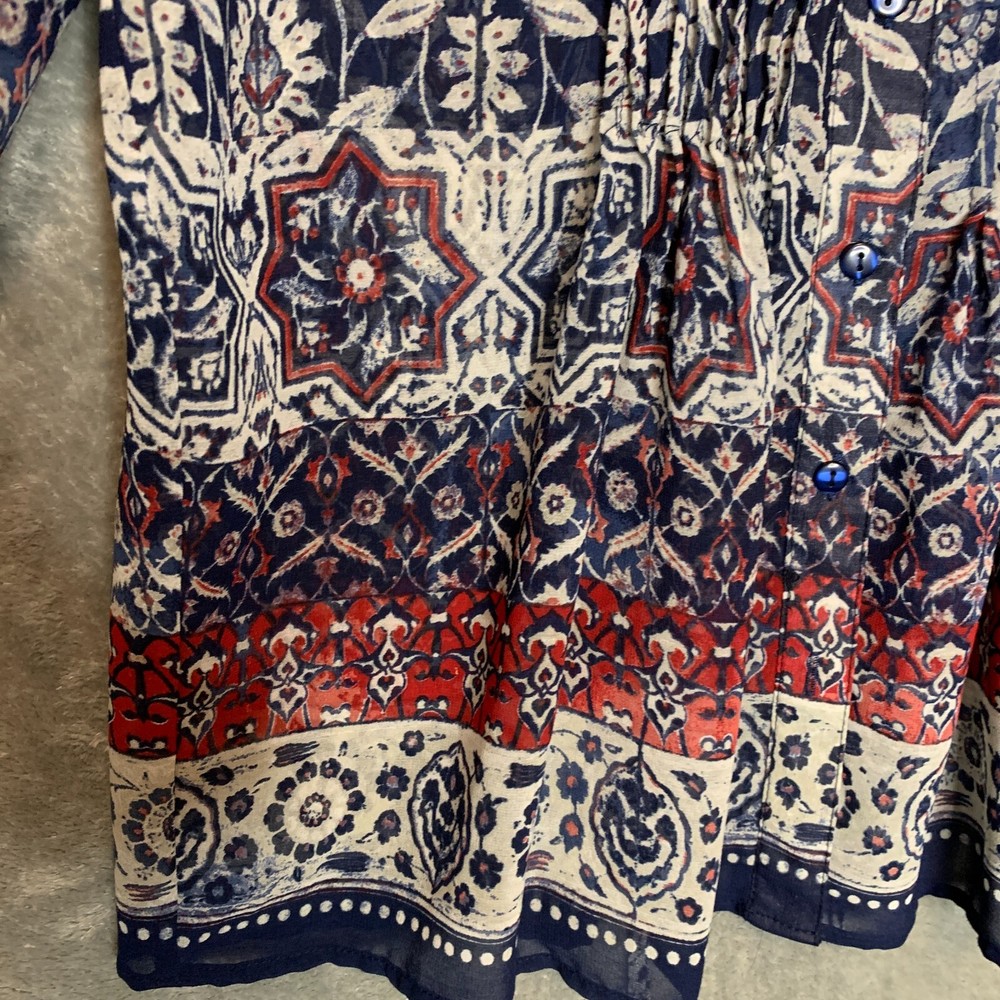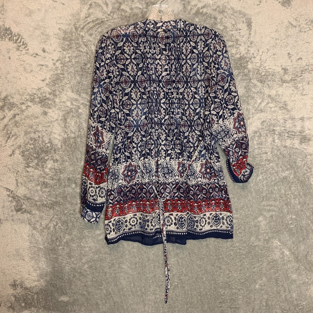 Great condition. New with tags. Please see photos for details. SUPER FAST SHIPPING!!! We ship next business day! If you aren't happy with your purchase we offer 30 day FREE returns. No questions asked! One World Women Boho Hippie Pintuck Roll Tab Chiffon Tie Back Button Front S NWT