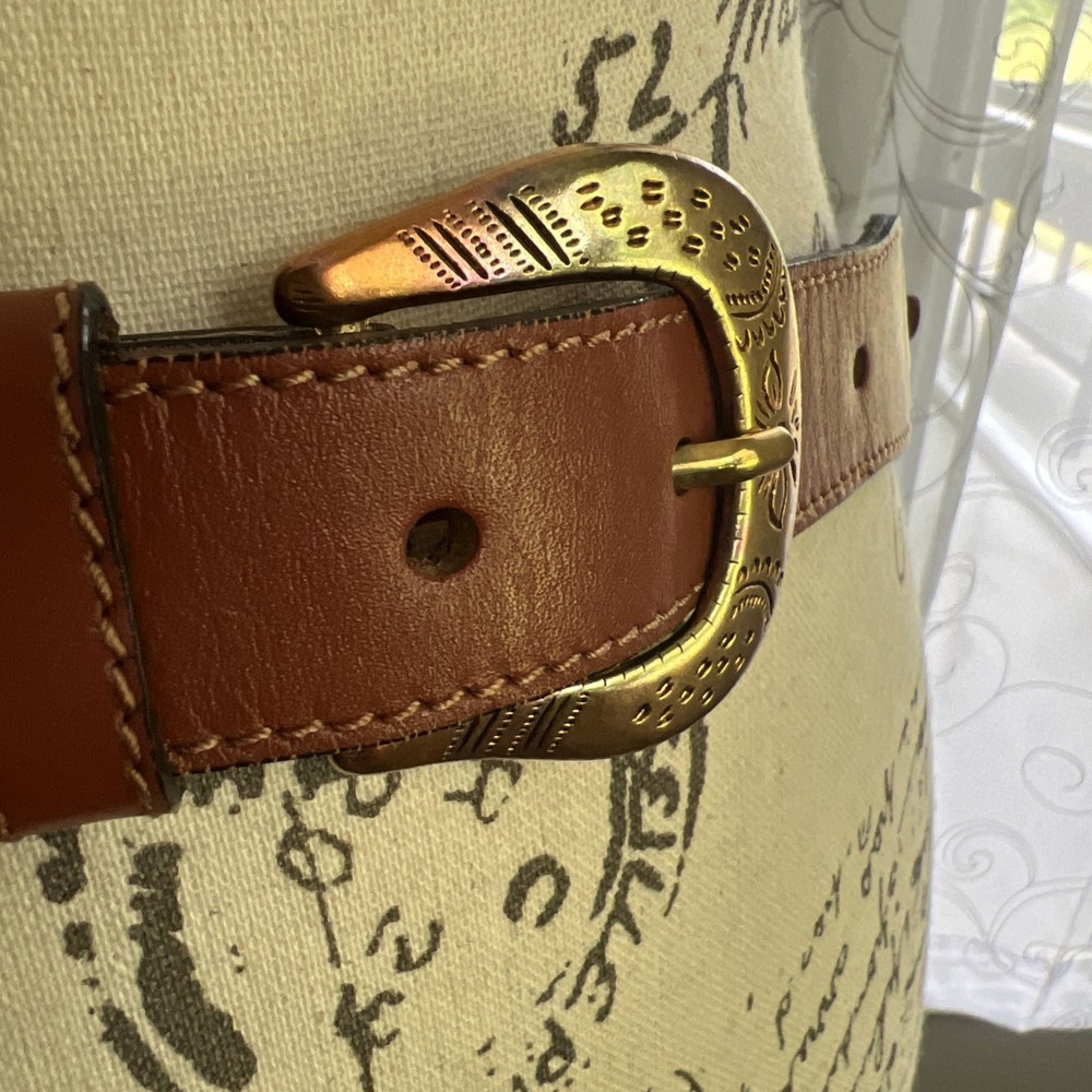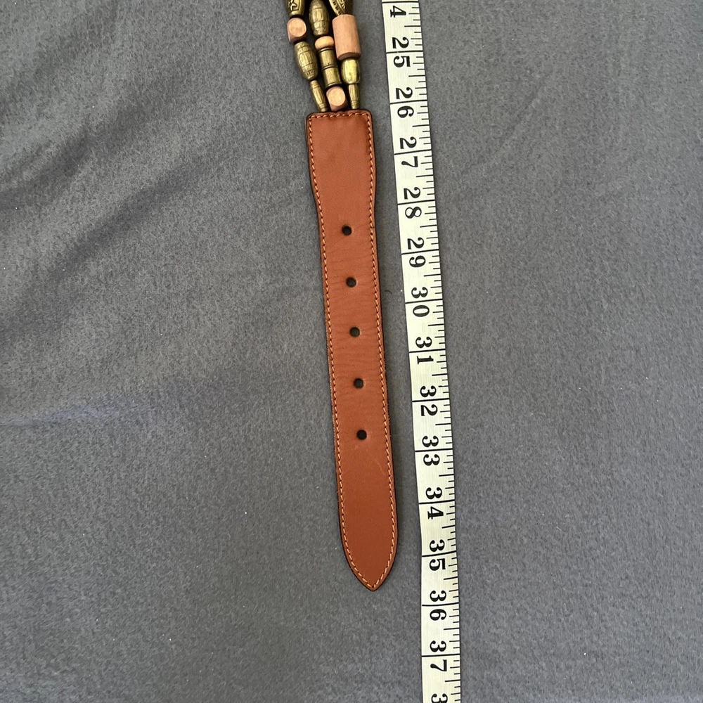 This belt is preowned with little signs of wear. No rips, no stains. Refer to pictures for condition and measurements. Colors may appear different in person than in pictures.