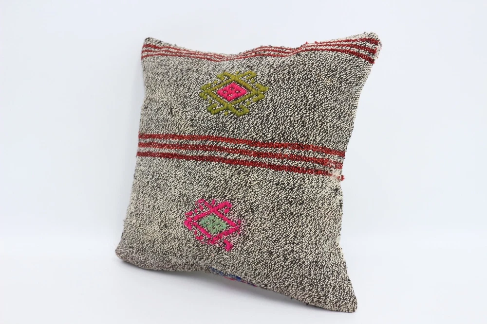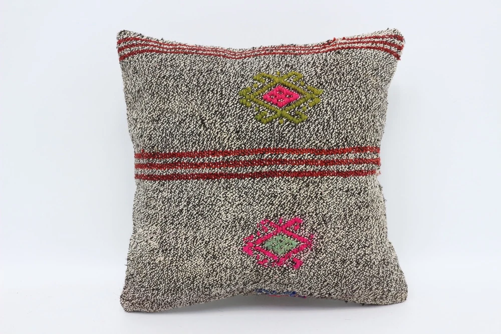 Boho Pillow, Kilim Pillow, Pillow for Couch, 14"x14" Brown Cushion Cover