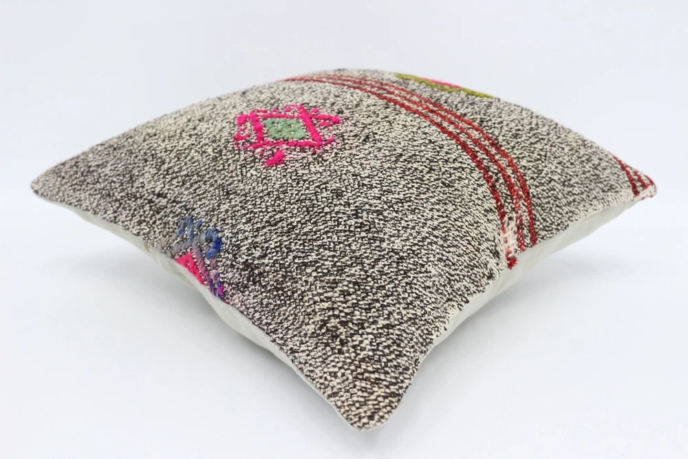 Kilim Pillow Details: All of my beautiful pillow covers or cushion cases are designed and made by me. I am making my throw pillow covers from handmade vintage rugs, Turkish rugs. Therefore, each of my vintage kilim pillowcase is one of kind. These cushions covers are piece of an art. The size of this pillow is 14 x 14 inches or 35 x 35 cm. The front side of this decorative pillow cover, cushion cover is wool on wool vintage kilim rug. The backside of this throw is high quality cotton fabric with a high quality zipper. This listing has 2 option for this handmade pillow. You can choose with insert or without insert. The listing photos is with insert in the pillowcase which is just for demonstration purpose. All of my vintage Turkish rugs have been professionally washed before I cut them as pillow case or cushion case so these kilim covers are 100 posent clean and ready to use. Due to the age and handmade nature of these vintage rugs, there might be imperfections and flaws that are not considered defects. This is a piece of a handmade vintage rug with minor signs of wear consistent with age and use that give it an antique look. You can see the condition of the rug pillow clearly in the detailed photos. I am going to ship your order of decorative pillow as soon as possible. I usually ship in the next day with DHL Express or FedEx which will deliver the kilim pillow, cushion cover just in 3-5 business days. It is my responsible until you receive pillow cover or pillow cover with insert at your door. If the pillow cover or insert get lost or damage during the shipping, I will ship the new kilim pillow cover or pillow insert for free as soon as possible. I take photos of my throw pillows indoor with professional camera which shows the real colors. The photos of these Turkish pillow covers are not altered. Keep in mind the colors of the rug vary slightly in different lights. Please contact to me for additional photos. I take the photos of my vintage rugs outside with daylight to show you the real and natural colors. My photos are not altered. Keep in mind the colors of the rug vary slightly in different lights. Please contact to me for additional photos. SATISFACTION GUARANTEED for your order in my shop. Your SATISFACTION is the most important to me. Please write me if you have any question or if you don't like anything from my pillow covers, cushion covers. If any reason, you are not happy from your Turkish pillow cover, I accept return without any hassle. Please read my shop policies for details. This cushion case or pillow cover can be used as decorative throw pillow, gift pillow, Christmas pillow case, bedding pillow, lumbar pillow, sofa pillow, bohemian pillow, boho pillow. You can find in any kind of Turkish kilim pillow cover in different design such as striped pillow, embroidered pillow, and geometric pillow.