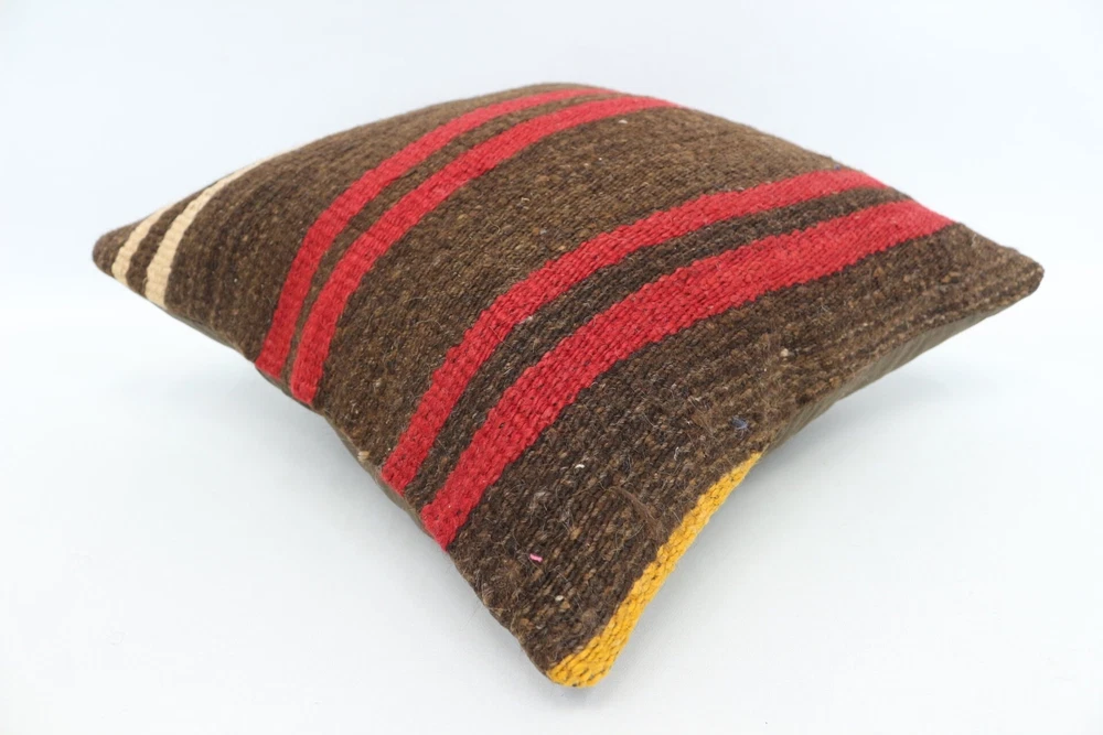 Kilim Pillow Details: All of my beautiful pillow covers or cushion cases are designed and made by me. I am making my throw pillow covers from handmade vintage rugs, Turkish rugs. Therefore, each of my vintage kilim pillowcase is one of kind. These cushions covers are piece of an art. The size of this pillow is 14 x 14 inches or 35 x 35 cm. The front side of this decorative pillow cover, cushion cover is wool on wool vintage kilim rug. The backside of this throw is high quality cotton fabric with a high quality zipper. This listing has 2 option for this handmade pillow. You can choose with insert or without insert. The listing photos is with insert in the pillowcase which is just for demonstration purpose. All of my vintage Turkish rugs have been professionally washed before I cut them as pillow case or cushion case so these kilim covers are 100 posent clean and ready to use. Due to the age and handmade nature of these vintage rugs, there might be imperfections and flaws that are not considered defects. This is a piece of a handmade vintage rug with minor signs of wear consistent with age and use that give it an antique look. You can see the condition of the rug pillow clearly in the detailed photos. I am going to ship your order of decorative pillow as soon as possible. I usually ship in the next day with DHL Express or FedEx which will deliver the kilim pillow, cushion cover just in 3-5 business days. It is my responsible until you receive pillow cover or pillow cover with insert at your door. If the pillow cover or insert get lost or damage during the shipping, I will ship the new kilim pillow cover or pillow insert for free as soon as possible. I take photos of my throw pillows indoor with professional camera which shows the real colors. The photos of these Turkish pillow covers are not altered. Keep in mind the colors of the rug vary slightly in different lights. Please contact to me for additional photos. I take the photos of my vintage rugs outside with daylight to show you the real and natural colors. My photos are not altered. Keep in mind the colors of the rug vary slightly in different lights. Please contact to me for additional photos. SATISFACTION GUARANTEED for your order in my shop. Your SATISFACTION is the most important to me. Please write me if you have any question or if you don't like anything from my pillow covers, cushion covers. If any reason, you are not happy from your Turkish pillow cover, I accept return without any hassle. Please read my shop policies for details. This cushion case or pillow cover can be used as decorative throw pillow, gift pillow, Christmas pillow case, bedding pillow, lumbar pillow, sofa pillow, bohemian pillow, boho pillow. You can find in any kind of Turkish kilim pillow cover in different design such as striped pillow, embroidered pillow, and geometric pillow.