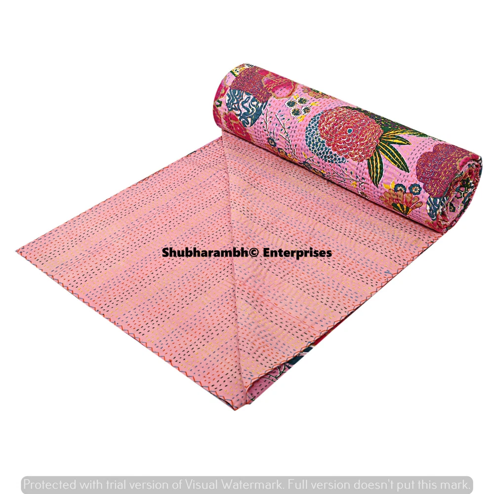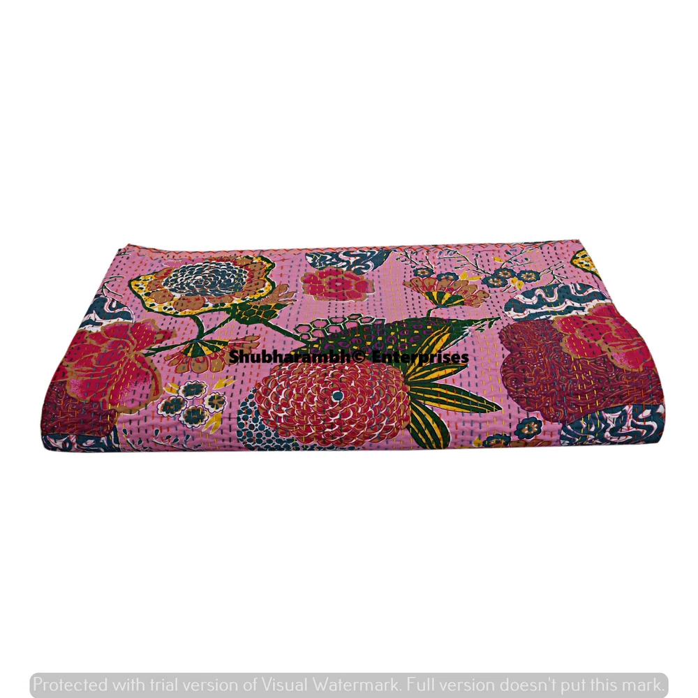 Product Details: Item - 1 PC Indian Cotton Kantha Quilt. Fabric - 100% Cotton Fabric. Dimension - 90" X 108" Inches ( 224 X 274 CM) Colour - As Show in image Wash Care - Machine Wash In Cold Water. Product Description: Indian Cotton fabric Hand Quilted Kantha Quilt,Twin Blanket / Bedspread These Single Kantha quilt is made by two layer cotton fabric. These Kantha quilt is made by most of valuable hand art to give a unique Kantha pattern. Payment policy: We accept the payment by pay pal. International buyers are responsible for their countries duties and taxes.