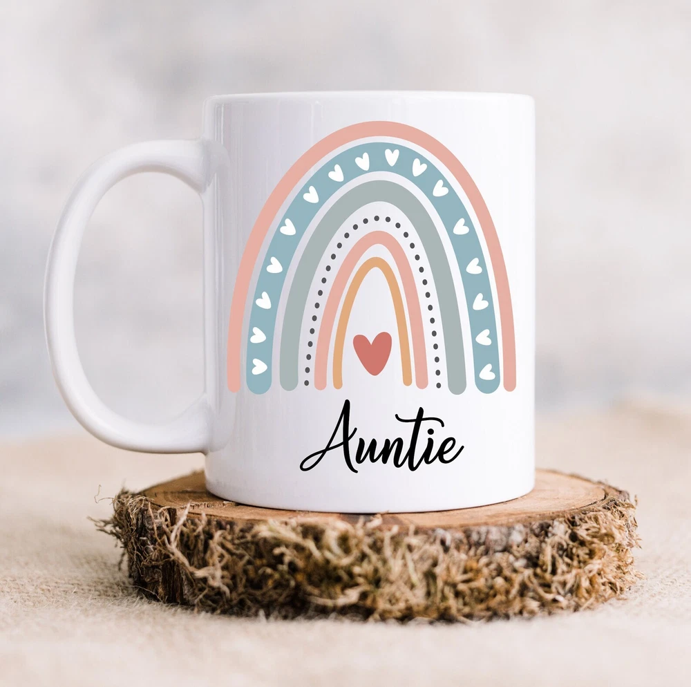 Boho Rainbow Coffee Mug Custom Gifts For Auntie Gift Ideas For Aunt Rainbow Mug Coffee Cup Personalized Auntie Gifts Birthday Gifts Product Details.. This high quality 11oz. ceramic white mug has a premium hard coat that provides crisp and vibrant color reproduction sure to last for years. Perfect for all hot & cold beverages. The highest quality printing possible is used. It will never fade no matter how many times you wash it. Material: 100% Ceramic. Print both sides. Dishwasher and Microwave Safe. High Gloss + Premium White Finish. Printed in the U.S.A. Personalized & Custom. We support personalized and custom mug to add custom, when placing an order, you can add notes to the "order note" in shipping address section. Also you can contact us directly via message. Shipping Info. Ready to ship in 1 to 2 business days, All products are made-to-order and proudly printed in the United States. Shipped by USPS and DHL, You will receive your order in 5-7 days. Replace & Refund. All products are defective during shipping broken, chipped will be replaced free of charge. You are not satisfied with the product, we will refund 100% money to you. If any other issues arise, please do not hesitate to message, we would be more than happy to assist you.