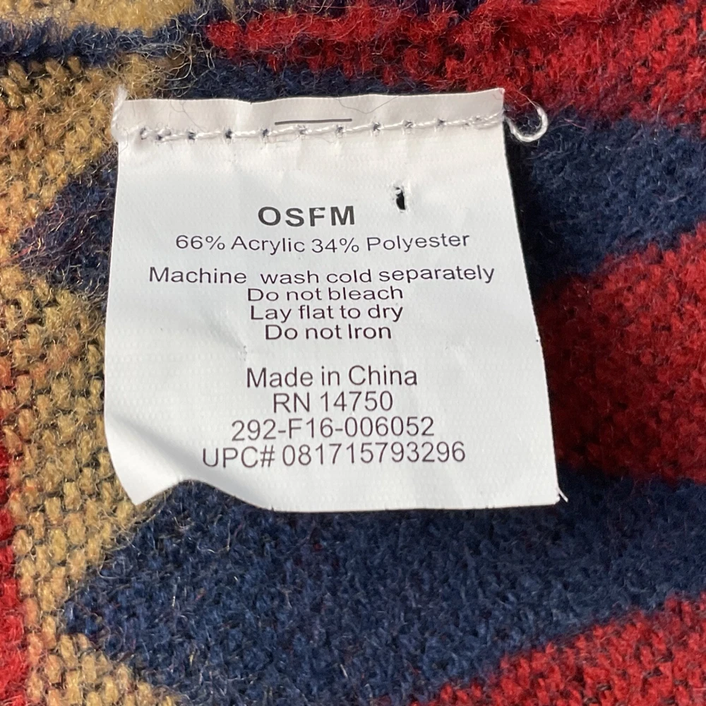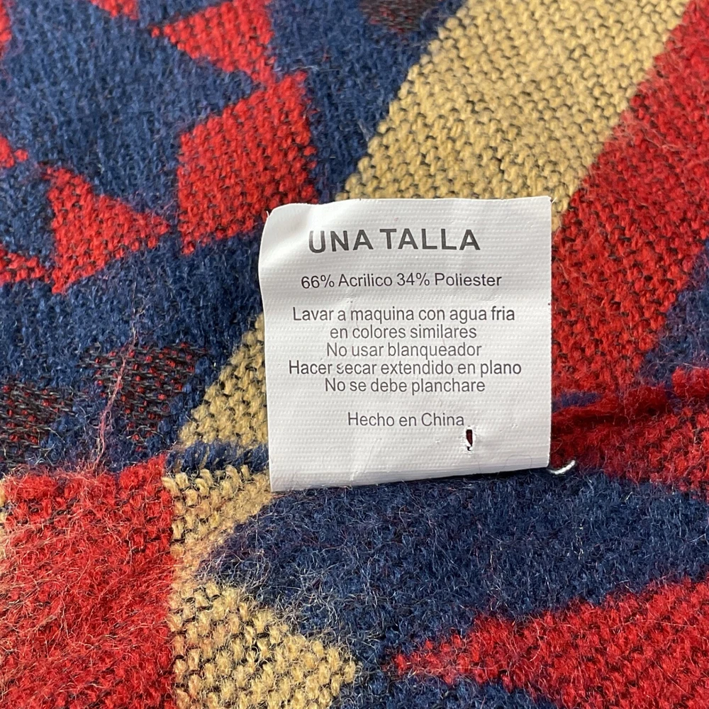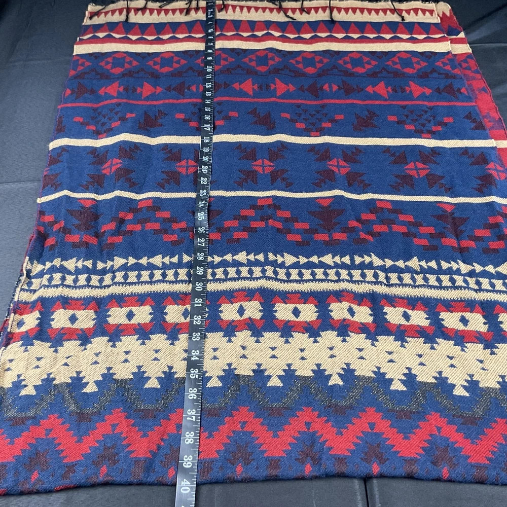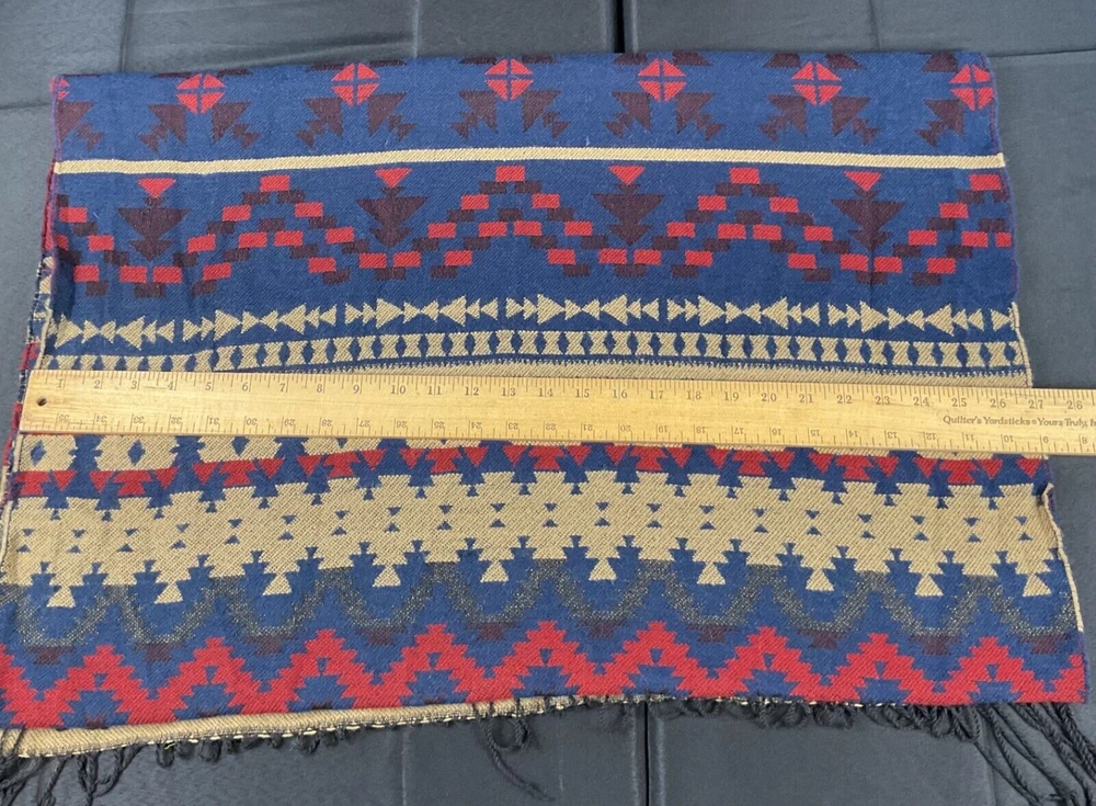 Boho western print polyester/acrylic blend blanket scarf with fringe. Made in China, one size, machine washable, dry flat. Very good preowned condition - please see photos for additional info.
