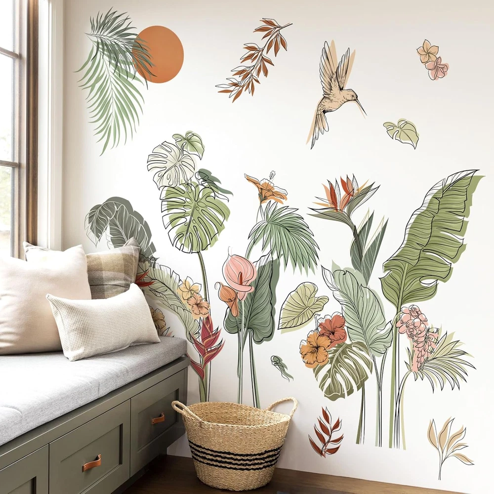Boho Tropical Leaves Flower Wall Decals Bohemian Floral Plants Sun Wall Stickers