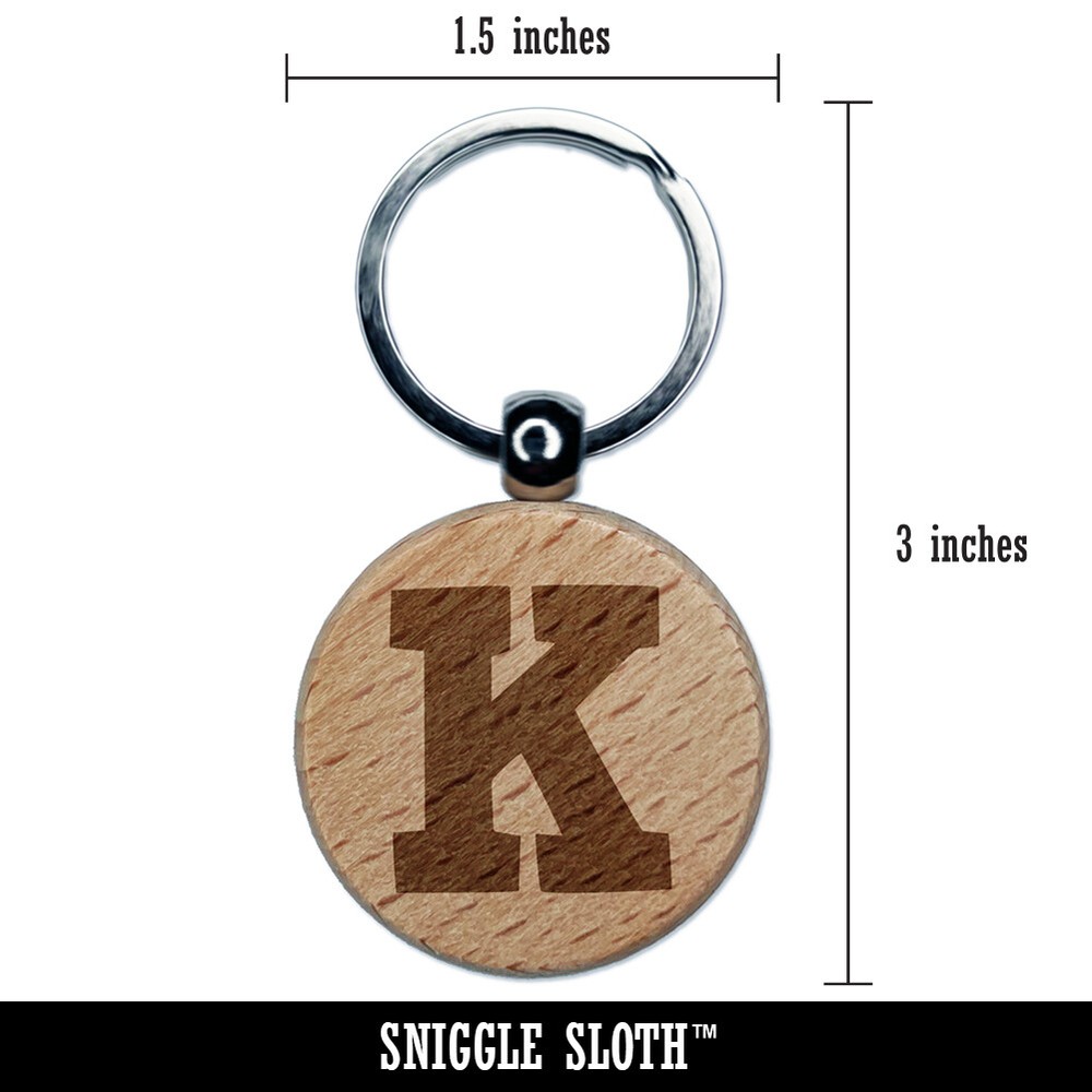 Bold Letter K Engraved Wooden Round Keychain Tag Charm