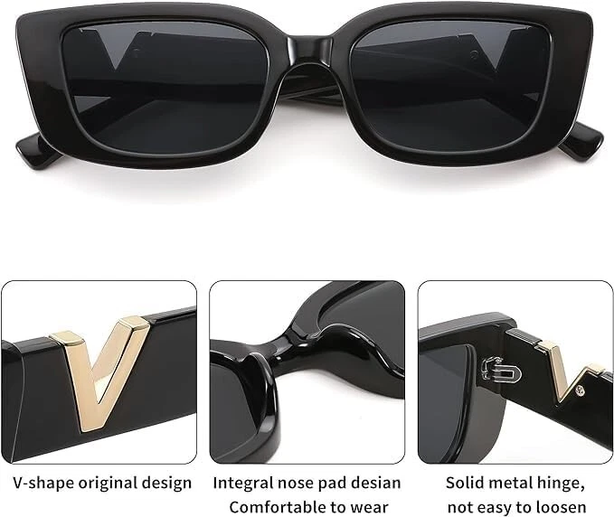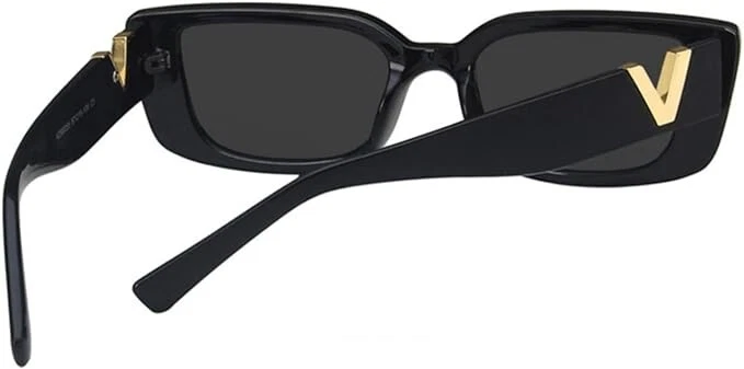 Int roducing the must -have accessory for every fashion -forward woman : Black Sung lasses with a stunning Gold V Accent . These sleek black rectangle frames add a touch of elegance to any look , while the trendy gold V adds a luxurious and bold statement . These sunglasses are the perfect blend of sophistication and trend iness , making them a versatile accessory for every outfit . Designed specifically for women , these black rectangular sunglasses are tailored to enhance your style . Em brace the Y 2 K era with these trendy 200 0 s sunglasses , adding a modern twist to nostalgic styles . Whether you 're dressing up for a special occasion or simply want to elevate your everyday look , these sunglasses are the perfect choice . Our trendy sunglasses for women come in diverse styles , catering to every mood and occasion . With these V -shaped sunglasses , you can express your individual ity and make a bold statement . The modern and ed gy design adds a unique touch to your outfit , making you stand out from the crowd effortlessly . Not only do these sunglasses elevate your fashion game , but they also offer UV protection to keep your eyes safe from harmful rays . So why wait ? Define your style and stay on -t rend with our Black Sung lasses with Gold V Accent - a must -have for any fashion -forward woman . Don 't miss out , get yours today