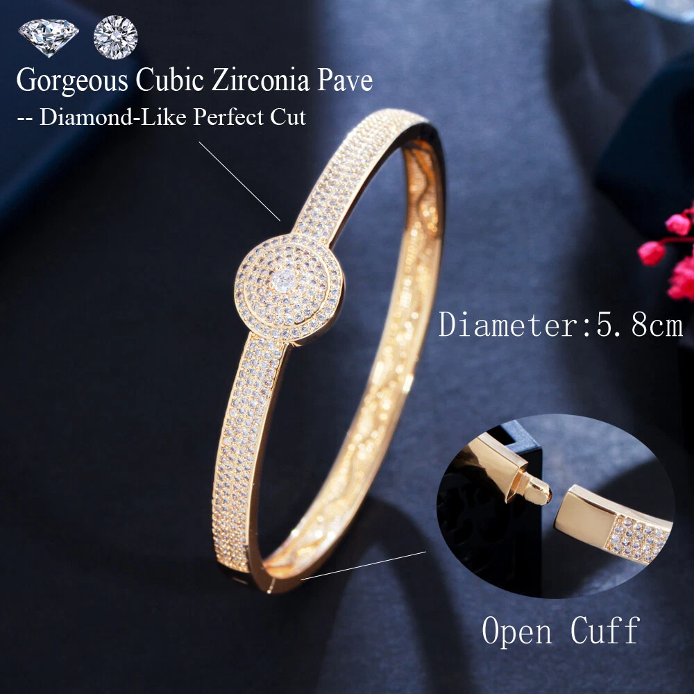 Bold Yellow Gold Plated Cubic Zirconia Round Open Cuff Bangle Bracelet For Women Specifications: 1. Condition: New 2. Metal Color : Yellow Gold/Rose Gold/Silver Plated 3. Bangle Diameter : 5.8 cm 4. Stone Material : Cubic Zirconia Features: 1. This Fashion Women Bangle are Luxury and Unique . 2. CZ Stone Material -Top Quality AAA Grade Cubic Zirconia , Diamond-like Brilliance. 3. Silver / Yellow Gold Plated for Endless Shine and Durability with the Look of Fine Jewelry. 4. a Perfect Jewelry Gift for Women, Girls , Mother , Wife , Fiancee , Bride , Bridesmaid . 5. Suitable for Various Occasions - Ideal for Wedding, Prom, Pageant, Parties, Daily Life , Holidays , Valentine's Day, Mother's Day, Christmas, Wedding , Anniversary, Graduation, Birthday ,etc. Package Includes: 1Pcs Bangle Payment Delivery details Terms of sales & Feedbacks About us & Contact us Our commitment Payment 1. We only ship item to your Ebay verified address . Please Make sure all address are the same 2.Please leave note in ebay when making the payment if you have any special request (colors/size). Delivery details We only send items to the registered eBay address.Items will be shipped within 2 business days from the date payment is received (not include public holiday and weekend) . As per eBay regulations, import duties, taxes, and customs charges are the buyer's responsibility. Please check with your country's customs office to determine what these additional costs may be prior to bidding or buying. Terms of sales & Feedbacks After-Sale Please contact us to request a return/replace/refund authorization .It will be best if you use ebay message to contact me. 1, Return and replacement request is available only the requests within 30 days after parcel received. 2, Returning the item as the same condition as received. Situation and solution Defectives ---Please contact us and provide a photo of the defective part. After situation confirmed,we will offer you refund/return/replacement according to the situation Not as Described ---Please contact us and provide a photo of the wrong part. After situation confirmed,we will offer you refund/return/replacement according to the situation Not Received ---Please undersatnding shipping on the way was out of our control ,because of the busy shipping season,holidays,bad weather or force majeure etc. It may be delay for days. But if it took too much time and not deliveried, Please message me, I will offer you solution for it. Feedbacks 1. If you are satisfied with our service, please leave us a + Good feedback and rate the details of the transaction (DSR) with a. . When you rate the shipping time part please take international transit into consideration.] Your recognition will make us more confident to develop business and serve you better. 2. Please contact us first if you have any problem with the items,we will solve it in time ! 3. Please do not leave Neutral or Negative Feedback before you contact us, Thanks For Your Business ! About us & Contact us Working time: Chinese time(Eastern eight zones):Monday to Friday ,9:00 am to 6:00 pm. We do not work on chinese legal holiday. Message reply: We will reply all messages within 24 hours of business time. Please contact us via ebay message, it was the best way for both you and us to solve problems. Any questions or anything you need, please feel free to contact us. Our commitment 1.Wholesale price will be offered to you if you need in bulk ! 2.About Size