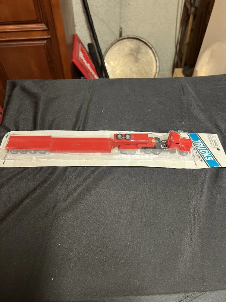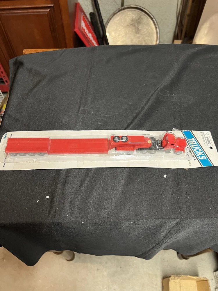 Boley 2028 HO Scale Flatbed Tractor Trailer red Truck Cargo Hauler package is only in fair shape but the truck and trailer are fine please see all pictures and email me with any questions thanks bill