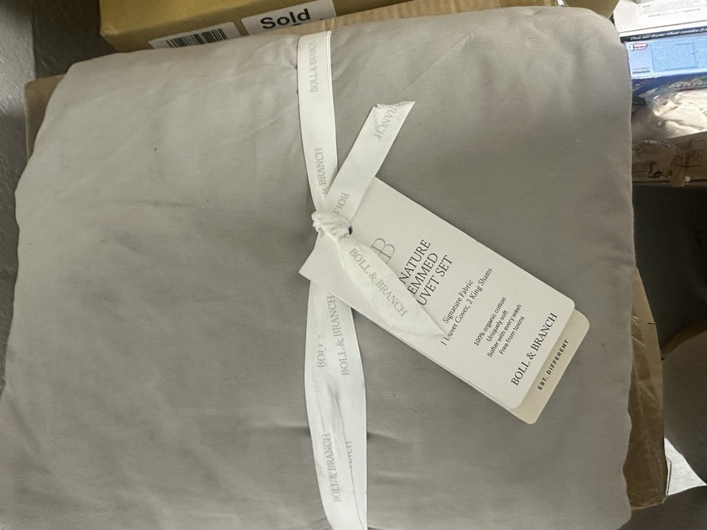 The Boll & Branch Signature Hemmed Duvet Set in Pewter is a luxurious three-piece set designed for King and Cal King size beds. Made from 100% cotton with a thread count of 201-400, this duvet cover set features a solid color pattern and a rectangular shape. The set includes a duvet cover with a button closure, making it easy to care for with machine wash instructions. Perfect for adults' bedroom, this duvet set offers a high-quality feel and a natural cotton material that adds a touch of elegance to any bedroom decor.