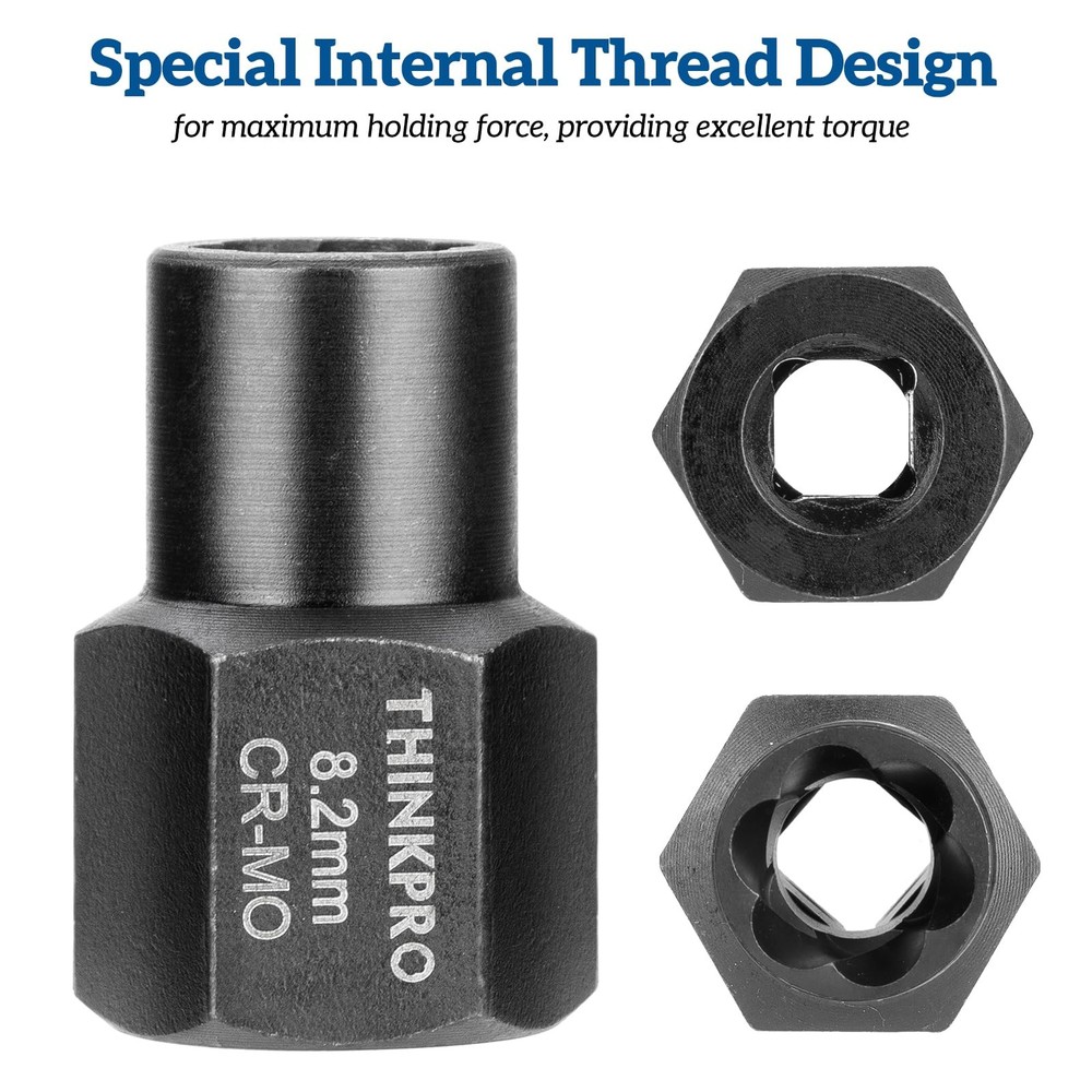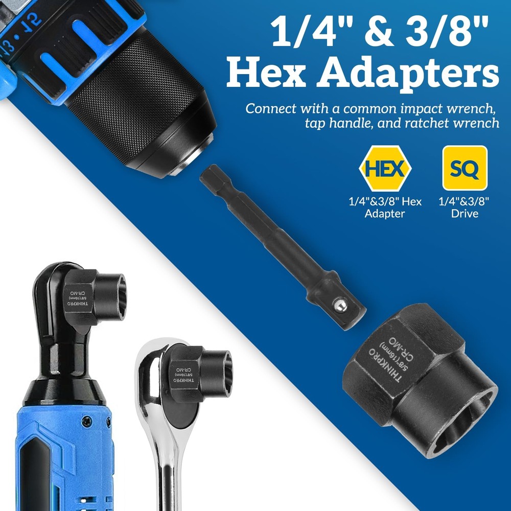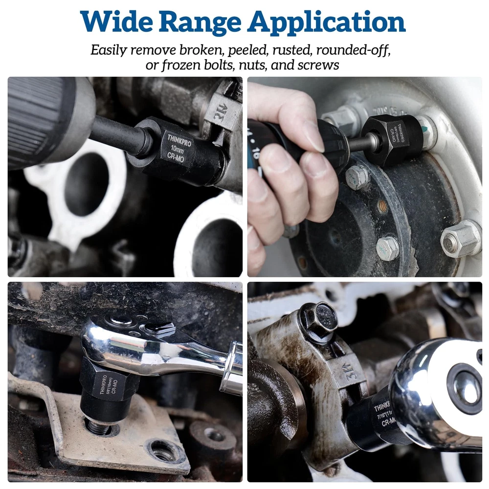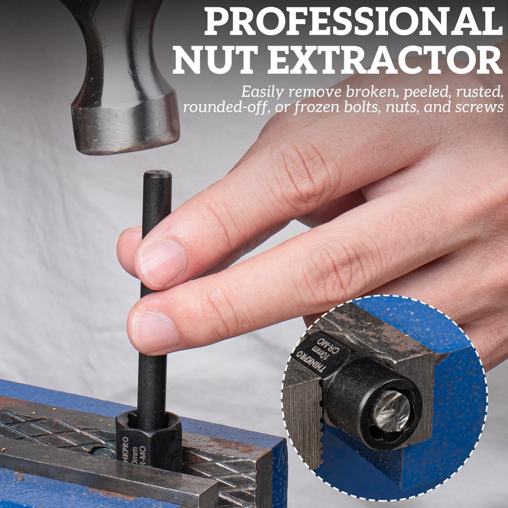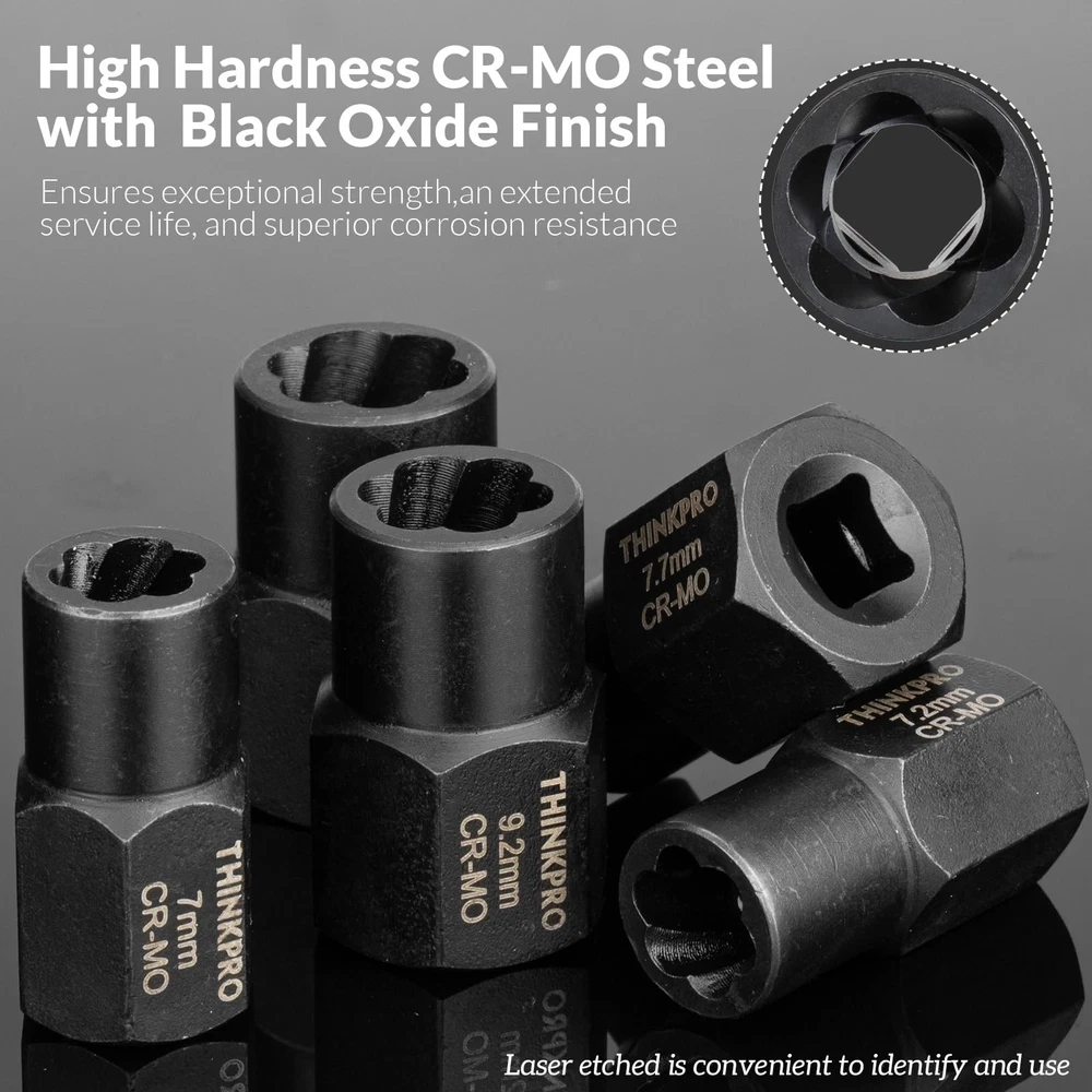 35PCS Impact bolt removal tool- your ultimate solution for tackling stubborn, stripped, or damaged bolts, nuts, and screws with ease. Engineered to perfection, this bolt and nut remover set is designed to meet the diverse needs of both professionals and DIY enthusiasts. Efficiency Redefined:Our bolt extractor kit is meticulously crafted to ensure efficient removal of rusted, worn, or painted-over fasteners. With a comprehensive selection of standard (SAE) and metric (mm) sizes, you can confidently tackle any project knowing you have the right tool for the job. Designed for Tight Spaces:Say goodbye to frustration caused by restricted access! The bolt extractor socket set features a longer and slimmer profile, allowing you to reach bolts in tight spaces effortlessly. Gone are the days of struggling with traditional hex extractors - our innovative design compensates for space limitations, ensuring hassle-free extraction every time. Unmatched Gripping Power:Equipped with reverse spiral flutes, our nut and bolt extractor sockets deliver superior gripping power. The internal thread of each socket firmly grips the bolt, providing exceptional torque. As you turn, the screw extractor set tightens its grip, making stubborn fasteners a thing of the past. Convenience at Your Fingertips:We understand the importance of versatility in your toolkit. That's why our bolt extractor set includes standard 1/4" and 3/8" square head and hex adapters, enabling you to use your preferred hand, air, or power tool. Additionally, a knock-out pin is included for effortless socket removal, enhancing your overall user experience. Built to Last:Crafted from high-hardness CR-MO steel, each component of our bolt extractor set is engineered for durability and longevity. Packaged in a heavy-duty case with laser-etched dimensions, organizing and identifying your sockets has never been easier. Rest assured, delivers trustworthy quality you can rely on. Experience the difference with the 35PCS Impact Bolt & Nut Remover Set - your go-to solution for removing stubborn, rusted, or damaged fasteners with precision and ease. Upgrade your toolkit today and tackle any project with confidence! 【Easy and Efficient】The bolt and nut remover set provides superior connection to increase grip to remove old rusted and stripped bolts. 【High Degree of Serviceability】Standard 3/8-inch drive and hex adapter to let the extractor socket compatible with common to heavy-duty power tools, drivers and screwdrivers handle tools. 【Solid and Sturdy】Each rounded bolt remover is made of high hardness 41Cr Chrome Steel for ultra durability and tough strength to avoid damage during high-intensity use. 【Clear and Orderly】Easily identify and select the most suitable stripped bolt extractor to remove bolt which saves a lot of time and effort while removing rusted bolts out,while the black oxide finish adds strength and longevity. 【Neat and Portable】Packed in heavy-duty blow-molded case for easy storage, it's ok to take the screw extractor set to anywhere whether it is in your garage or factory.