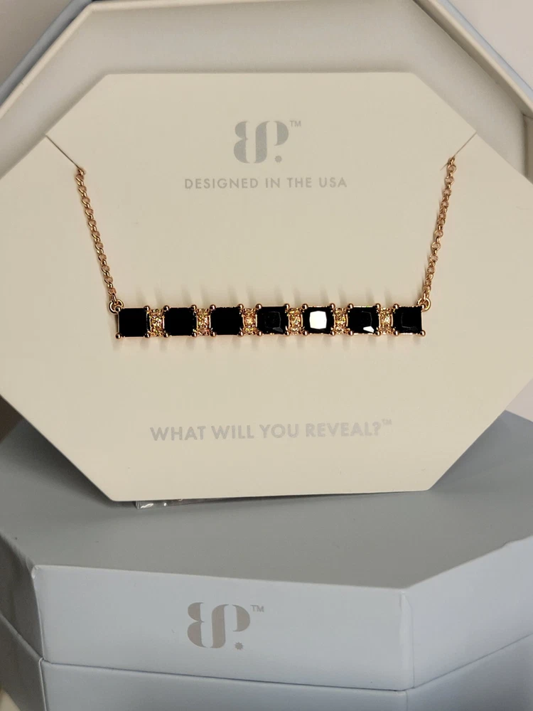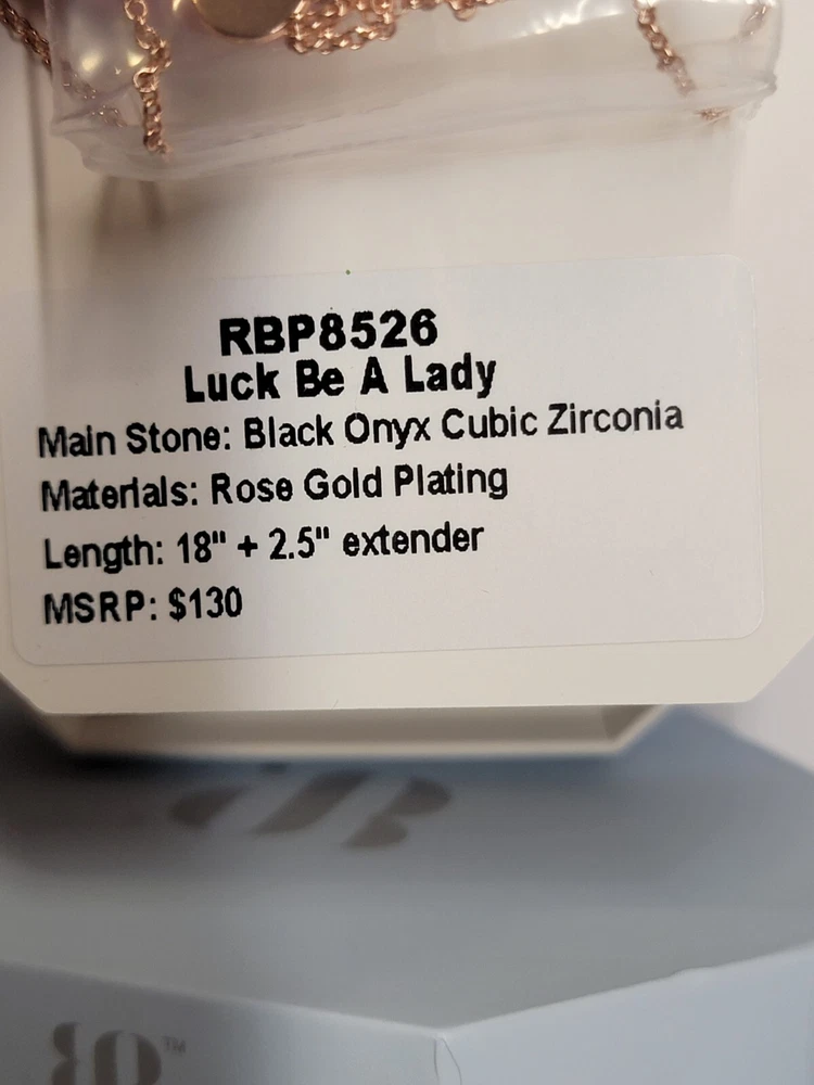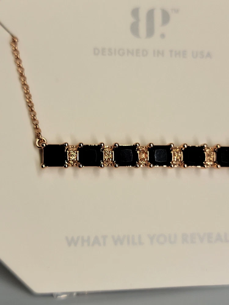 Bomb Party OG Collection Necklace RBP 8526 "Luck Be A Lady" Black Onyx Cubic Zirconia, Rose Gold Plating. New, never worn, in original packaging. Ships USPS Ground Advantage.