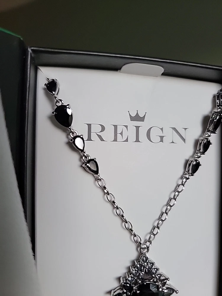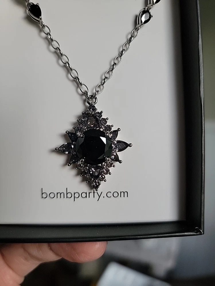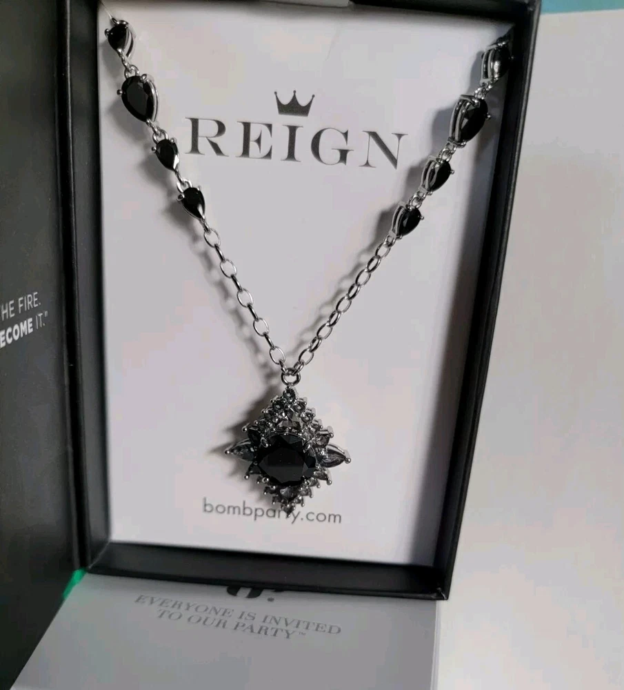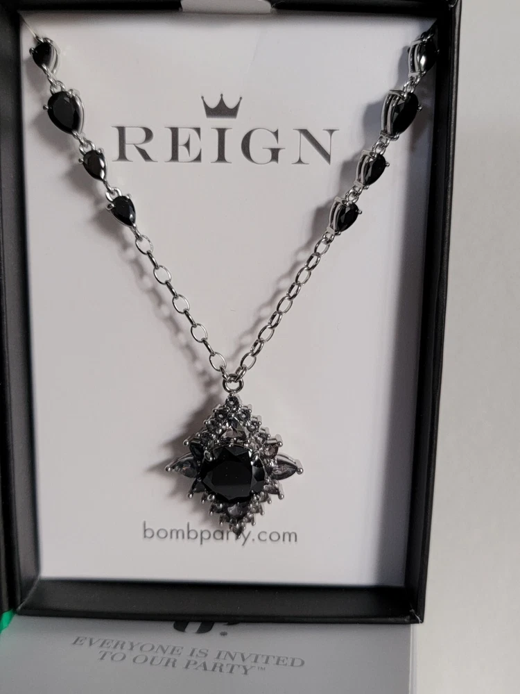 Bomb Party Reign Villain Collection Necklace, RBP 7652 "Under Her Rule" Black Onyx Cubic Zirconia, Silver Plating. New in original box. Ships USPS Ground Advantage.