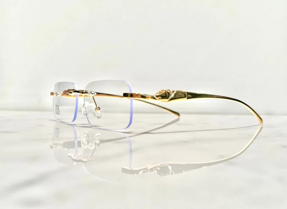 Brand: Bonano Model: Calabria Size: 54-18-140 Color: Gold :Handmade stainless steel construction plated in 18k gold :Handmade Jaguar adorns both left & right temple :18k gold plated metal frame inlay, temple and segments :Bonano Signature logo inlay inner right temple :Bonano CR-39 Non Prescription Clear Demo Lenses. :Comes with Bonano storage box, cleaning cloth, hard-case & frames + lenses :Frame Size 54-18-140 SHARE SHARE ON FACEBOOK TWEET TWEET ON TWITTER PIN IT PIN ON PINTEREST