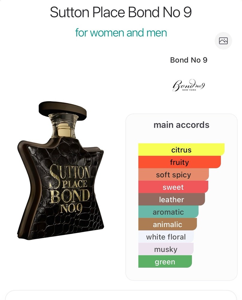 Volume: 3.3 oz / 100 ml Fragrance Name: Sutton Place Size Type: Regular Size Brand: Bond No. 9 Formulation: Spray MPN: 888874005648 Type: Eau de Parfum
