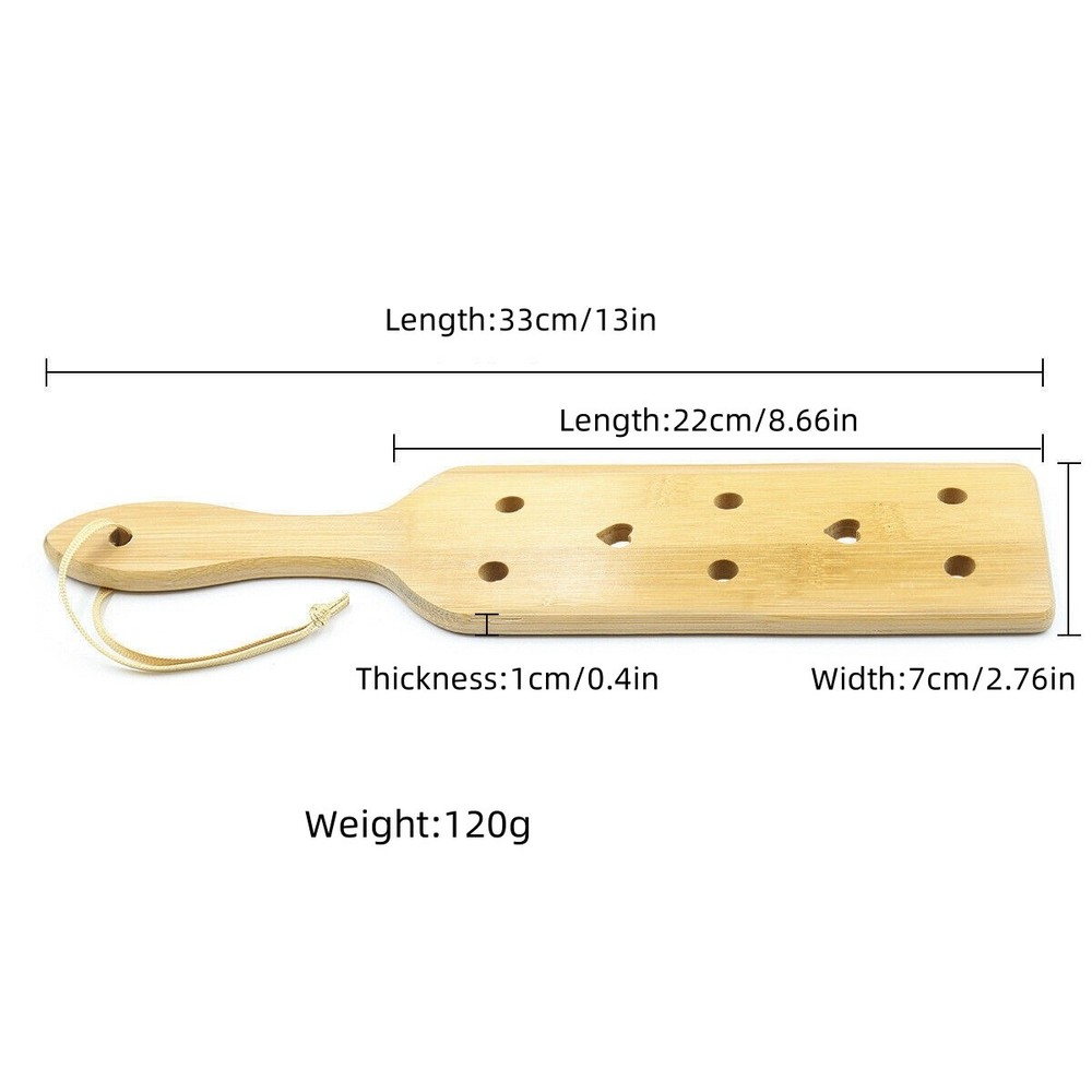D iscreet Package Overview : Private Auction & Discreet Shipping Condition: 100% B rand New Material: Bamboo Include: 1 pc spanking paddle Size: As picture shown N ote: The product is manually measured, the error of 1-2cm is normal. P ackage: All it ems will be carefully packaged in a plain wrapper with no indiscrete return address or contents notations so as to guard your privacy. Please feel free to contact us if you have any questions.