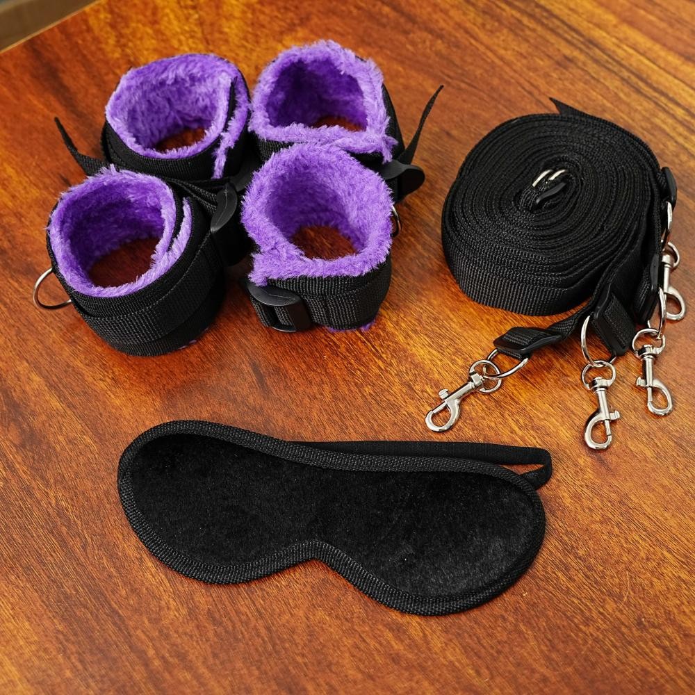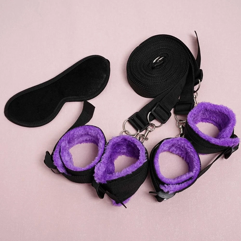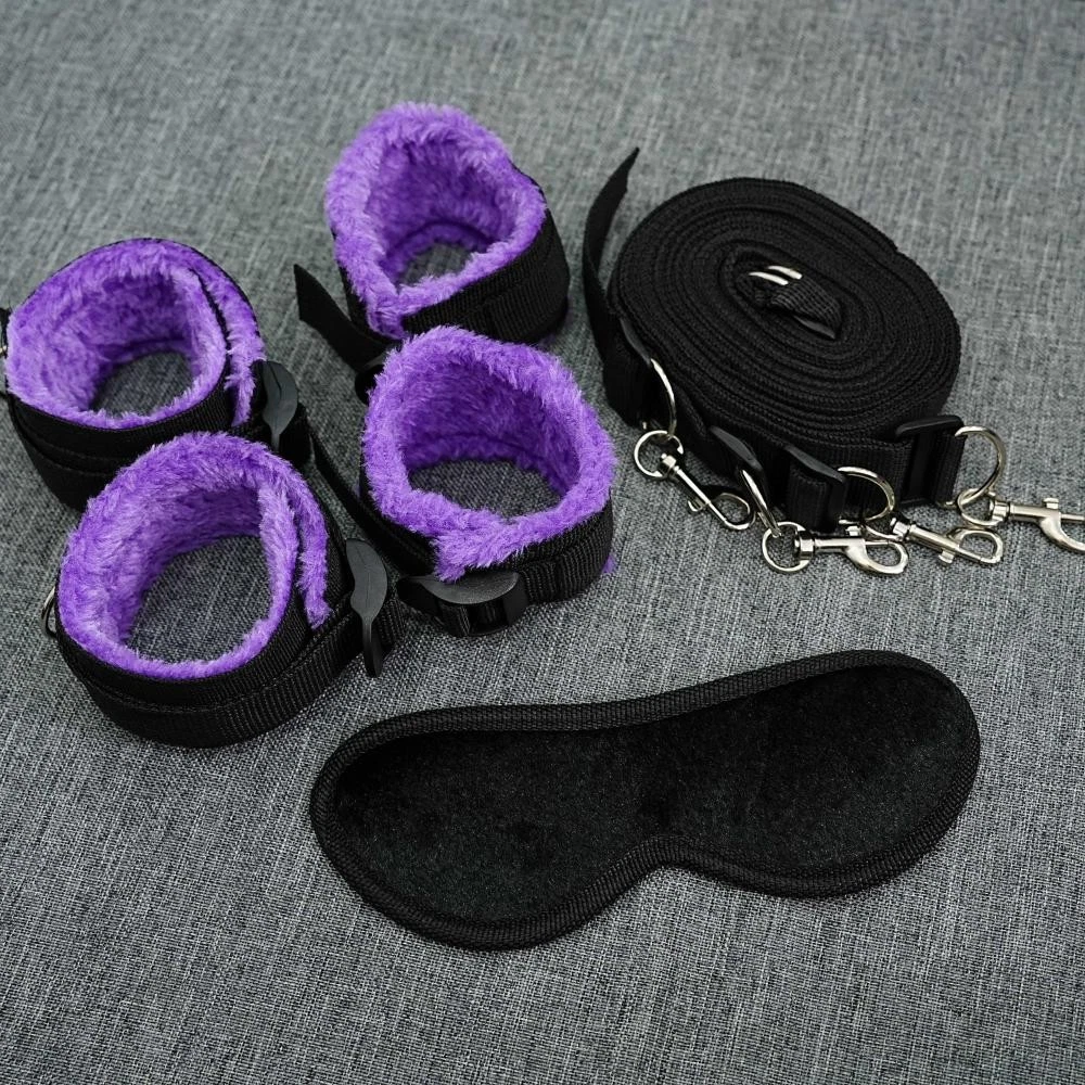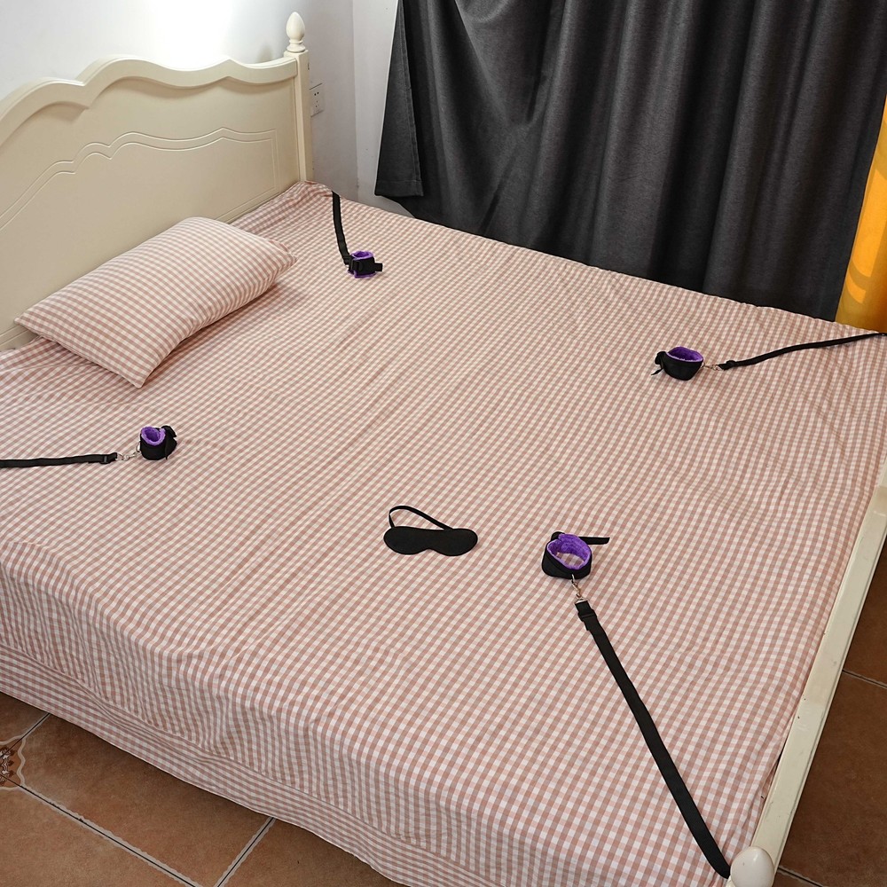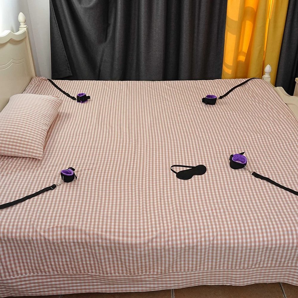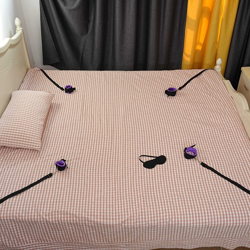 Bondage Bed Resraints Kit Handcuffs Ankle Cuffs Set Straps Blindfold Adult BDSM