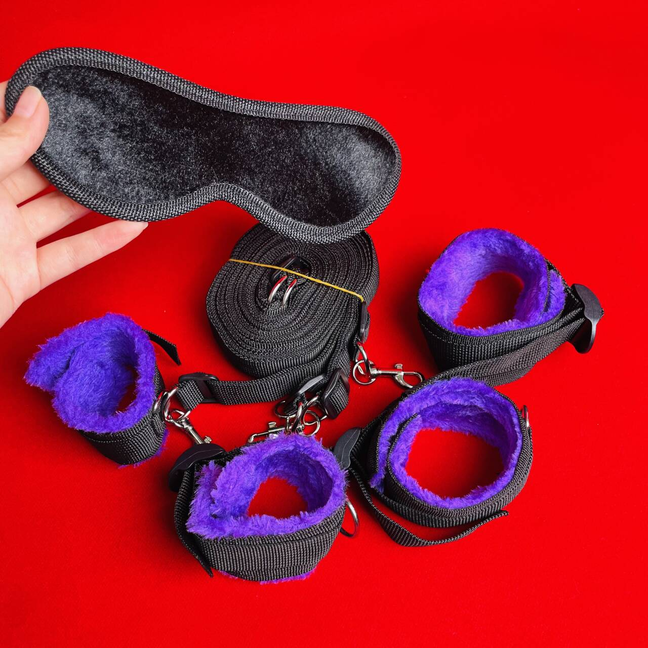 Discreet Package Descrption: Ready to introduce a little kinky fun into the bedroom Give our Bed Restraint Straps Flirting Toys a try! With high quality soft plush that won't pull at your lover's delicate skin, it will let you experience the thrill of role play in the bed. Use it to bind wrists, ankles, or tie each other up or blindfold one another for some sensual play. Explore your deepest fantasies! What happens next is up to you! Colour: Purple&Black Package include: 4 x Cuffs + Restraint Straps 1 x Blindfold Notes: 1.Turn any size bed into a place of binding pleasure. Restraint straps quickly fit beneath mattress or frame without hooks. Restrain your partner's arms or legs from the sides or the top and bottom of the bed. 2.Portable and travel-sized 3.Sets up in seconds Kind tips: Please feel free to contact us if you have any questions. If you contact us out of office hours, we will get back to you the next business day. Thank you for your understanding. Discreet packaging. Your order will be securely and discreetly packaged in a plain mail bag or cardboard box. There will be no indication to the contents of the parcel or where it has been dispatched from.