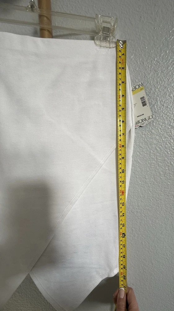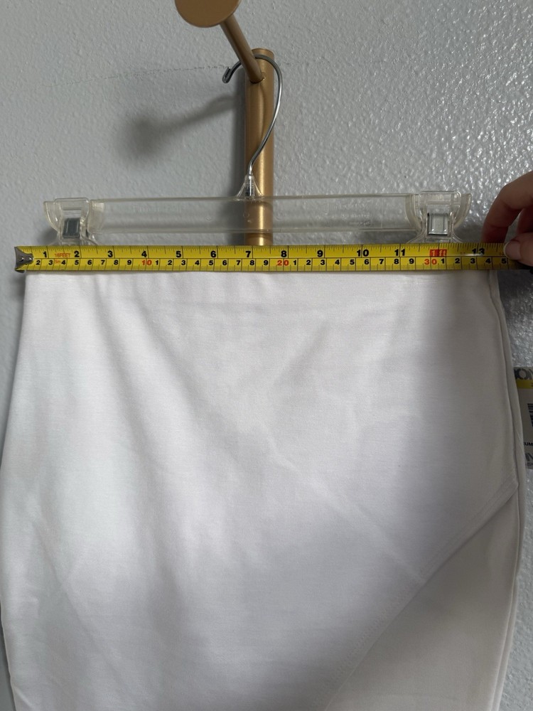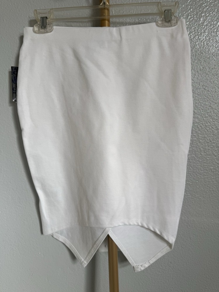 NEW! Bongo white skirt size medium This elegant white skirt is perfect for any occasion. Its sleek design offers a sophisticated look. 95% polyester, 5% spandex About 13 1/2” at waist 19” long and then about 21 1/2” long where the style sits a little longer (see photos)