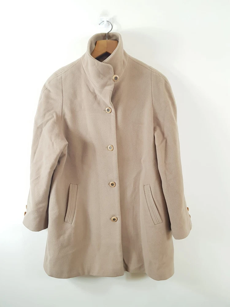 This Bonmarché coat is a stylish addition to any wardrobe. The wool blend material ensures both warmth and comfort, while the beige colour and mid-length cut make it perfect for any occasion. The coat features a button front closure, a collared neckline, and is lined for extra warmth. With its classic design, this coat is suitable for both casual and travel wear. Hand wash only, the coat is made in the United Kingdom and is available in size 16 (EUR 44). Perfect for autumn, winter, spring, and summer, this coat is a must-have for any fashion-conscious woman. In Good Used Condition Measurements In inch : Please see photos above for all measurements I will ship this item out via Evri 2-3 Day Mail with a tracking number for confirmation I ship items out EVERY DAY so EXPECT a QUICK delivery! Please feel free to ask any questions you may have I answer most questions instantly! PLEASE NOTE THAT ALL OUR ITEMS ARE %100 AUTHENTIC Please Note that all our items are from smoke and pet free Environment. #05/03/24# (B222) PLEASE VISIT MY STORE AND CHECK MY OTHER ITEMS THANK YOU