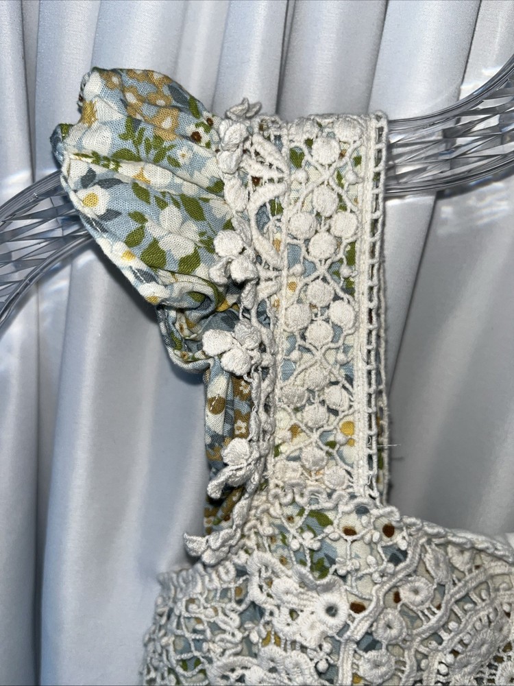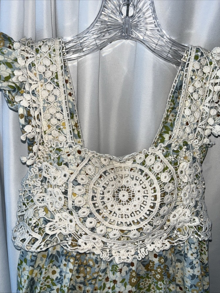 The Bonnie Jean Hayden Girls Crochet Floral Sundress in size 12 is a colorful and whimsical dress perfect for various occasions such as parties, weddings, or casual outings. The dress features a round neckline, short flutter sleeves, and a pullover closure, making it easy to put on and take off. Made from a blend of polyester, spandex, and 100% cotton, the dress is comfortable and stretchy, ideal for all-day wear. The knee-length dress is adorned with intricate crochet accents and a vibrant multicolor floral pattern, adding a touch of bohemian charm to any outfit. Perfect for the summer, fall, or spring seasons. This item had been clean according to EBay policy. (360)
