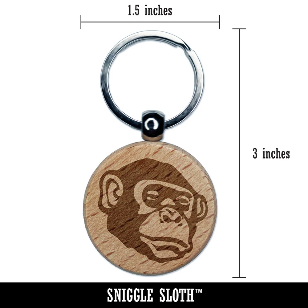 Bonobo Chimpanzee Ape Face Engraved Wood Round Keychain Tag Charm