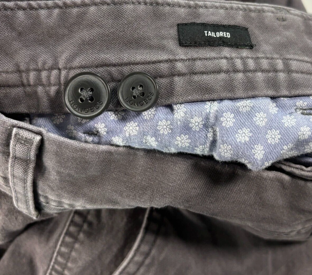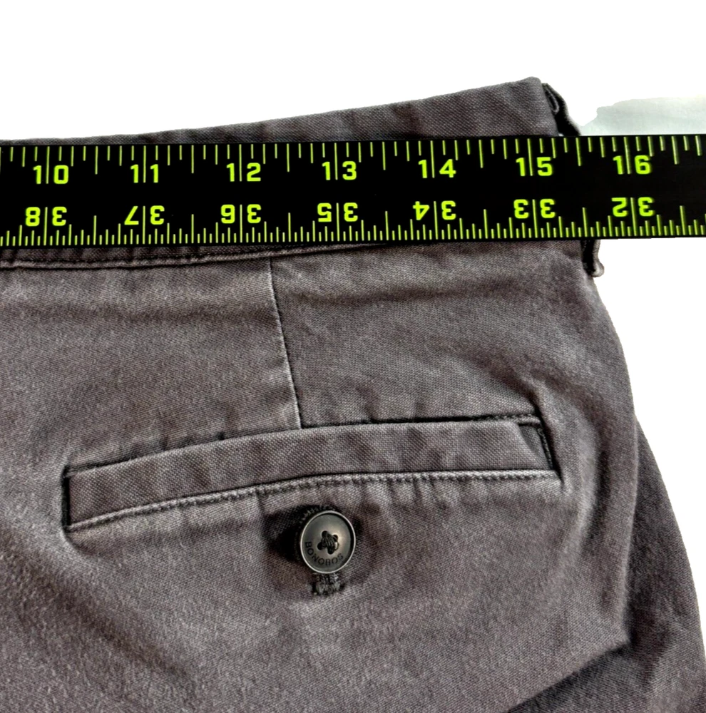 Bonobos Chino Pants Tailored Gray Graphite Stretch Straight Casual Mens 30x26 Tag Reads 30x28 but MEASURES 30.5 x 26.5 ***Small signs of wear, shown in photos--final photo is a close up:small tear on the back leg near the hem *** Otherwise, EUC Pre-Owned. Please refer to photos for the most accurate measurements, description, and estimation of the item's condition. We’re happy to answer any questions or provide additional photos before purchase if requested! All items are sold as is and we try our very best to note any issues with condition in both our description and close up photos. Please remember that colors can look different across different devices and monitors. FAST SHIPPING! Orders are usually shipped within 24 hours M-F Friday orders will ship Monday morning at the latest, unless there is a postal holiday. Feel free to send us a message before purchase if you?d like a certain delivery service or combined shipping offers. Condition: Please see photos for measurements. Any further measurements needed? Just ask! Tag Reads 30x28 but MEASURES 30.5 x 26.5 ***Small signs of wear, shown in photos--final photo is a close up:small tear on the back leg near the hem *** Otherwise, EUC Pre-Owned: shows minimal to no signs of wear, as expected with typical well cared for use such as slight fading of colors with age. Please make sure to double check measurements for the best representation of fit, as brands can vary in sizing. Comes without sales tags, dust bag, or brand box. Will it Fit Check? Please reference the listed measurements (in photos and/or text) before purchasing. Fit check tip: Grab your favorite similar style item at home, lay the garment on a flat surface, and measure shoulder to shoulder, the width (armpit to armpit), and length (top to bottom). Then compare your measurements to those in our listing! If you need any further measurements not noted in the listing, please feel free to request, we will get back to you asap. Still got Questions? Send us a message! We do our best to accurately and thoroughly represent each item in images and condition description, but, if there's any further information you'd like before purchasing or have a shipping request, please don't hesitate to ask and we'll get back to you asap. RETURN POLICY: Please reach out prior to purchase with any questions or shipping requests. Returns are accepted within 30 days, buyer pays return shipping. Refund issued upon receipt of item in original condition. Full refund (minus original shipping) will be issued once we receive the item assuming it is in the exact same condition as it was shipped.(Clean, unaltered, tags still attached if item was new with tags, etc.) We request that you select "Item does not fit" when returning an item that does not fit. Thank you for shopping small and supporting our lil' Rodeo!