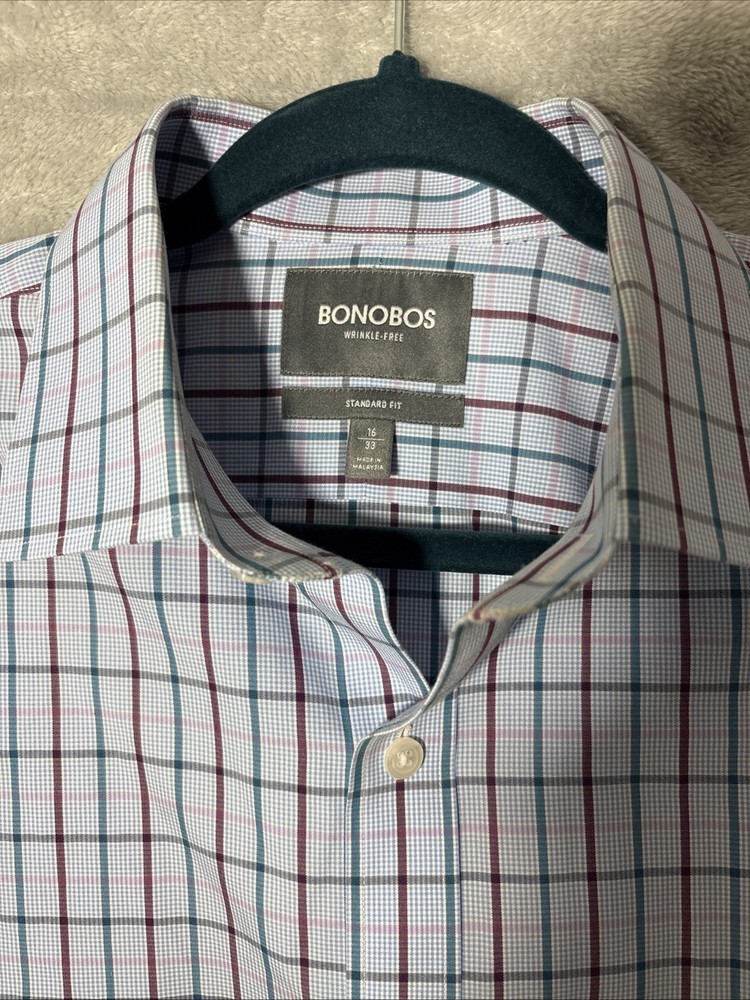 Bonobos Men's Standard Fit Dress Shirt Blue, Long Sleeve, Button-Up, Size 16/33
