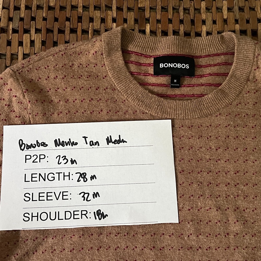 The Bonobos Merino Wool Crew Neck Sweater in Khaki is a stylish and versatile piece for men's casual wear. Made from high-quality wool, this sweater features a tight-knit construction and long sleeves, perfect for keeping warm during the winter, fall, or spring seasons. The solid beige color and classic crew neck neckline make it easy to pair with different outfits, while the pullover style adds convenience to the garment care. With its regular fit and medium size, this Bonobos sweater is a reliable and fashionable choice for everyday wear.