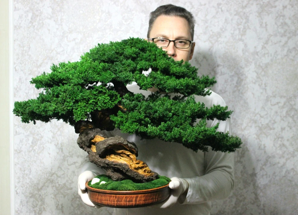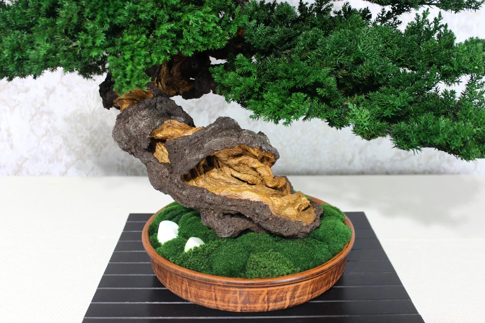 This beautiful Bonsai Tree is a perfect addition to any home décor. Made from natural preserved Juniper and Moss, it stands at 20,08 inches or 51 cm tall and 27,56 inches wide (70 cm). The tree is crafted with care and attention to detail, making it a unique and special piece. The Bonsai Tree is perfect for all occasions and adds a touch of elegance to any room. It is a wonderful addition to any floral décor and is sure to impress. The tree is made from high-quality materials and is designed to last. Bring a touch of nature into your home with this stunning Bonsai Tree because t his small Tree can greatly change your space by filling it with unique Natural Energy! You can view more Bonsai Trees on Ebay.com : https://www.ebay.com/usr/vitvoitse-0 or on MY WEBSITE: https://artbonsaitrees.com - there is a discount and a lot of additional information about what I am doing now, when there will be new Bonsai trees, packaging photos, tracking screenshots, etc. Description: SIZE: height 20,08'' (51 cm); lenghth 27,56'' (70 cm); width 15,75" (40 cm) POT : ceramic; diameter 11" (28 cm) WEIGHT: 5,3 kg You can watch a video about this tree here: https://youtu.be/pp8wnvxWkko The artificial Bonsai Tree is created using natural juniper twigs and natural moss that have undergone a special stabilization process that retains their natural look for many years without requiring special care. I make the trunk of the Tree by hand from a self-hardening multi-layer mixture on a wire frame, give it a texture and color that practically does not differ from natural wood and cover it with natural pine bark, which I also process and give the texture of an old tree. I do all the processes myself - from the collection and stabilization of natural components to the final assembly of the Bonsai Tree and laying the moss under it. Each of the stages is very laborious, but I do everything very carefully because I want my Bonsai Trees to be the best! If you have any questions, be sure to write and I will be happy to answer! ) Shipment EMS: is carried out in a reinforced cardboard box with a special metal fastening inside, marked "fragile" and a belief in the responsibility of delivery service workers. ) EMS (Express Mail Service) shipping by state carrier Ukrposhta (parcel marked as a "gift"). Shipping from Ukraine takes about: USA - 10-16 days ( up to 25 days during the holiday season ), United Kingdom - 10-15 days, Europe - 10-18 days, Canada- 10 - 18. Other countries - to 20 days. ( relevant for January 2025 ) MATERIAL: 100% natural preserved(stabilized) juniper ; natural preserved moss ; gypsum; wire; natural pine bark. PACKAGING: reinforced cardboard box with glued-in metal frames and braces. Time-tested reliability. USE: For indoor use only! Protect from water and long direct sunlight! SAFE: Non-toxic, non-allergen ECO-FRIENDLY: pigments used for colouring are compliant with european resolution. The real color of the item may be slightly different from the pictures shown on website caused by many factors such as brightness of your monitor. LONG LASTING: Keeps its form, texture and colour for many years (in the conditions of use: It is necessary to keep a minimum 40% moisture rate in the room to keep plants elastic and alive). The tree does not need any special care! Protect from water, fire and long direct sunlight!