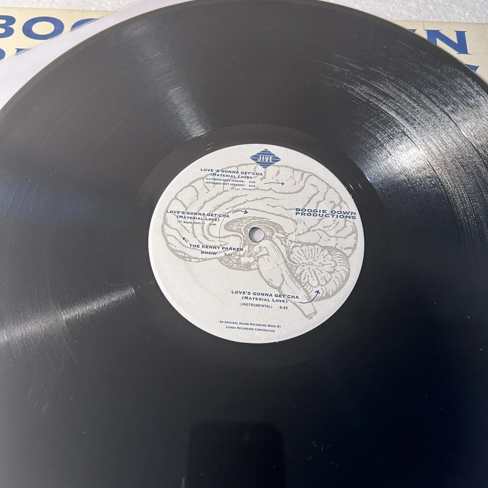 Type: Single Color: Black Record Grading: Very Good Plus (VG+) Artist: Boogie Down Productions Record Size: 12" Release Year: 1990 Record Label: Jive Genre: Rap & Hip-Hop, Hip-Hop & Soul Format: Record Style: Old School, Hip-Hop, 1990s Speed: 33 RPM Release Title: Love’s Gonna Get’cha Material: Vinyl Sleeve Grading: Very Good (VG)
