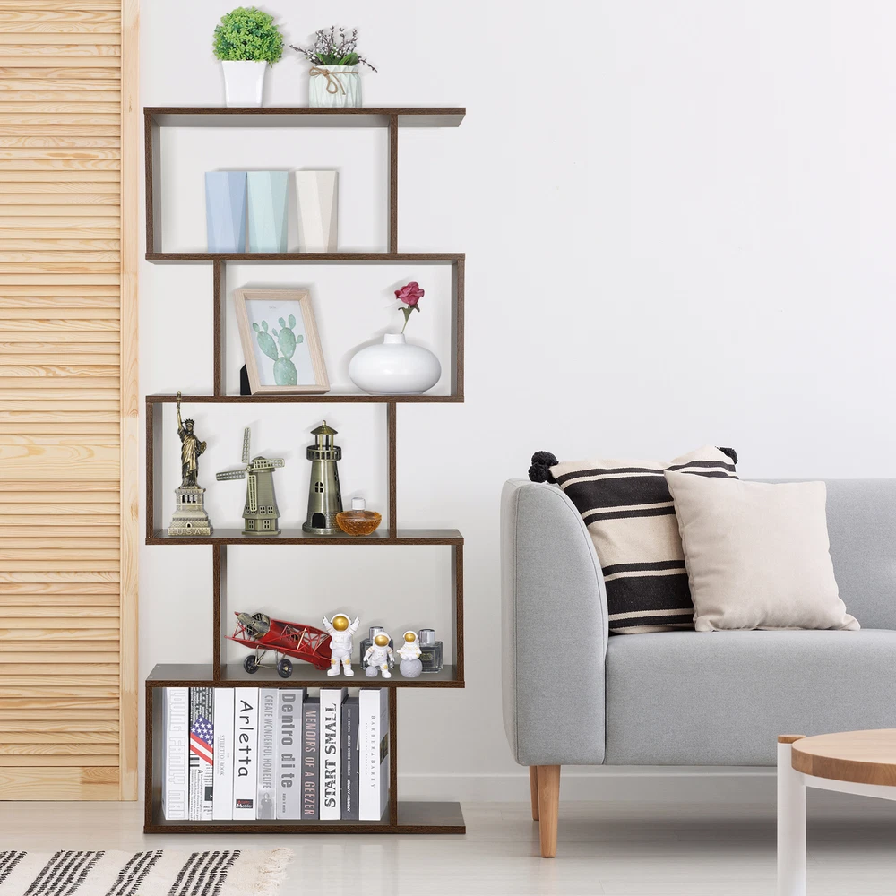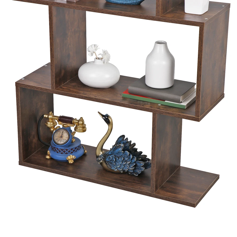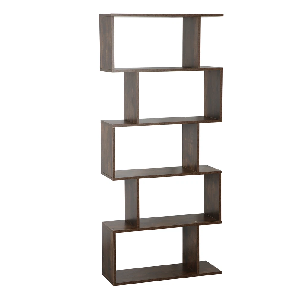 Features: 【 5-tier S-shaped Bookcase】 The open storage shelf bookcase is made of solid chipboard, it is solid to use, and stable retro look solid legs, making it sturdy to use, espeacially s-shaped design. 【Rustic Color for Home Decor】 The Chipboard Cupboard is beautiful appearance, which is in rustic brown, This adds the perfect pop of color to the room in progres the cozy color will add a simple and elegant taste for your room. 【Easy to Set Up】 All parts and manual are included, it will take a few mintues to assemble. If you have any problem assembling it, please contact us, we will help you. 【Ideal Storage Divider Bookshelf】 The 5- Shelves s-shaped bookcase which can be used to clarrify different books, or some other home stuff. Holds a decent amount of books, It will make your home organized and clean. S-shaped style is so retro to make your room cozier. 【Maximize Your Storage Space & Books Classification】 Eliminate clutter and maximize space, Create storage and display space for any living area in the home. Different compartments to sort different books. 【Easy to Clean】 Smooth finish makes it easy to clean with a damp cloth or sponge. 【Wide in Use】 Our 5-tier s-shaped bookshelf is good for clothes storage, book storage, decoration display, plants platform and so on, it can meet your needs when you want to add a organizational atomosphere. 【Customer First Principle】 If you have any problems with the item, please contact us first and you can send us message directly on eBay, we willl give you the satisfied solution. Specifications: Color: Rustic Color Material: PB, MDF Item Weight: 40.92lb Overall Dimensions: 27.56 x 9.45 x 62.6" Weight Capacity: 33 LBS / Shelf